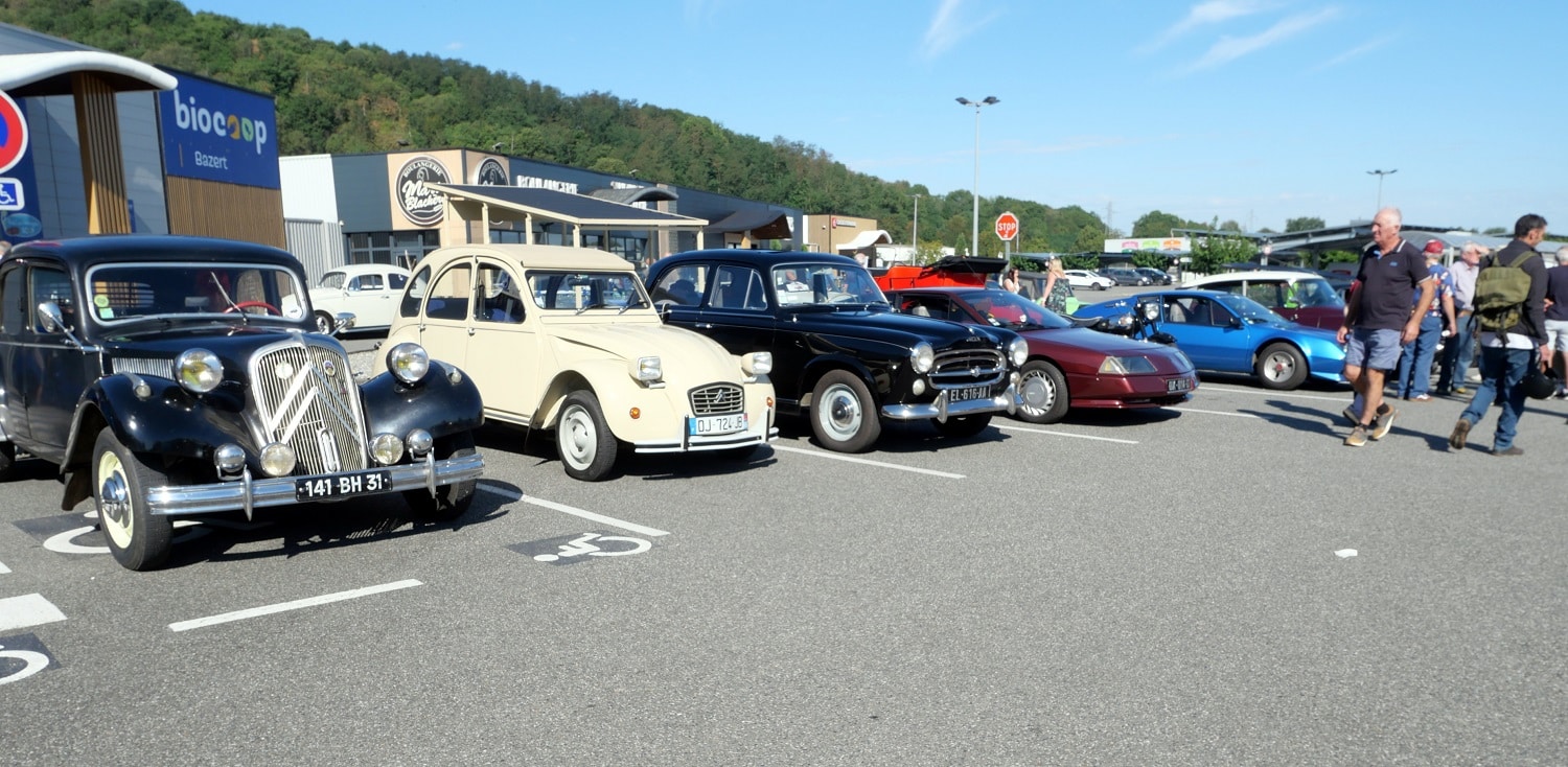 Ce dimanche 31 août, comme tous les derniers dimanches du mois, se tenait un rassemblement d’autos et de motos de collection sur le parking du Super U.