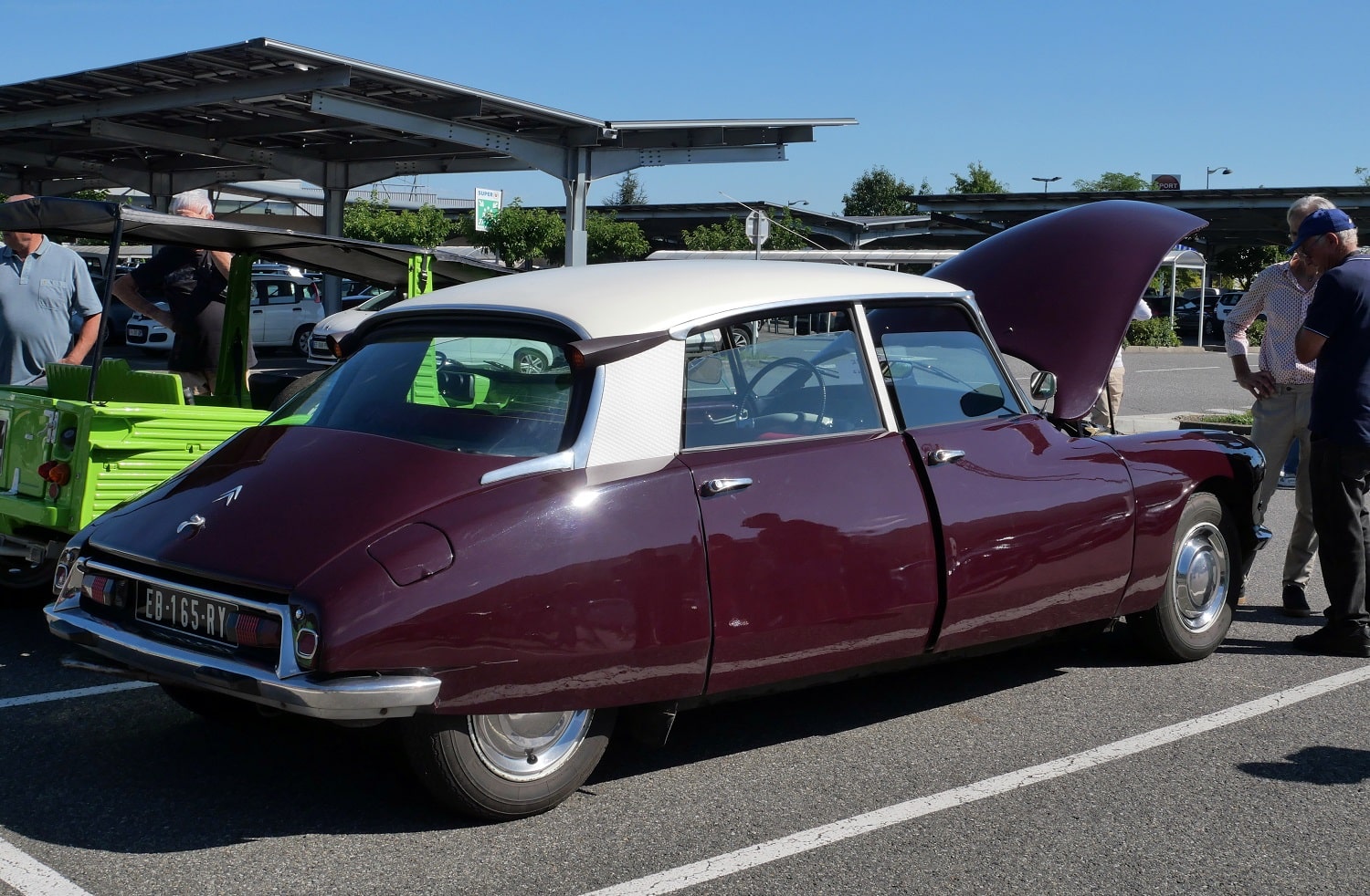 Une jolie ID 19 de 1967 à la robe Bordeaux était à vendre. Elle côtoyait l’Alpine A310 de Christian Trijoulet, initiateur de ces rencontres et une Ford Mustang.