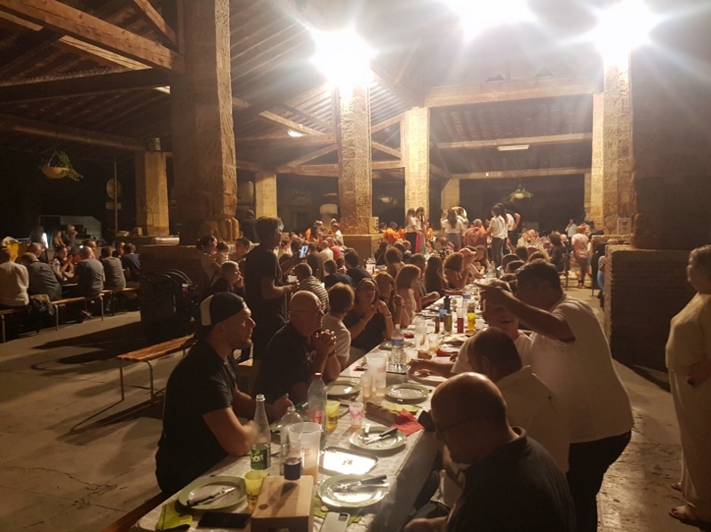 Samedi, la soirée fût également très réussie avec le repas officiel de la fête. Assuré par Hervé Rouziès (Le Bistrot D’Armand), il a fait « Halle Comble ». En effet, il a affiché complet avec 365 repas servis. La bandas « Los Companéros » a assuré l’ambiance. C’était le feu sous la halle! Jusqu’à la fin du repas, jeunes et vieux, petits et grands, se sont « éclatés », ont dansé, chanté au son de la musique. Puis direction, l’Esplanade, la fête s’est bien poursuivie toujours avec DJ MACHPROD.