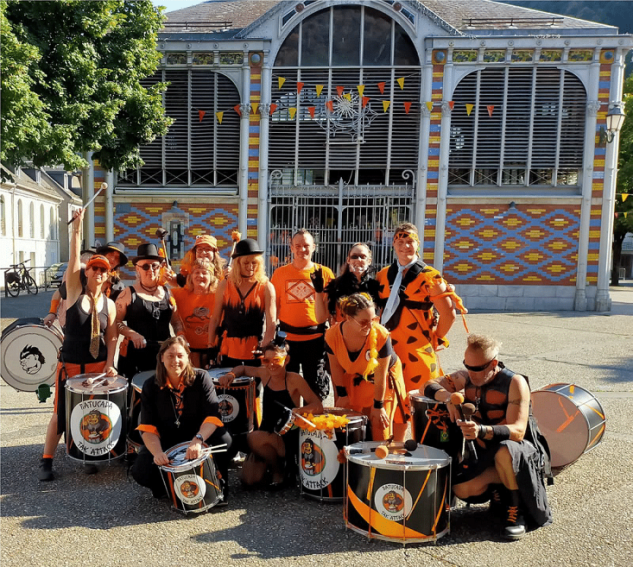 17h30 – 18h30 : Concert par la batucada Tak’Attack – Groupe de percussion avec rythmes brésiliens, rocks et technos !