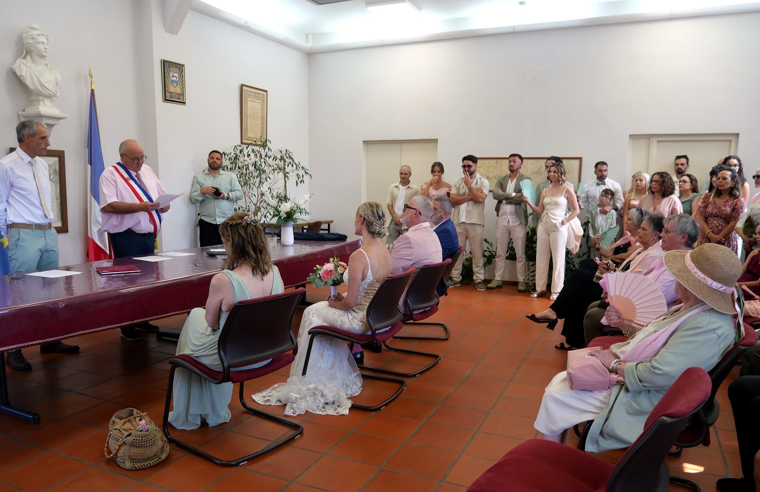 Samedi 6 septembre, Patrick Saulneron maire, assisté de Serge Colla 1er adjoint, procédait au mariage de Fabienne Adoue et de Paul Marteaux.