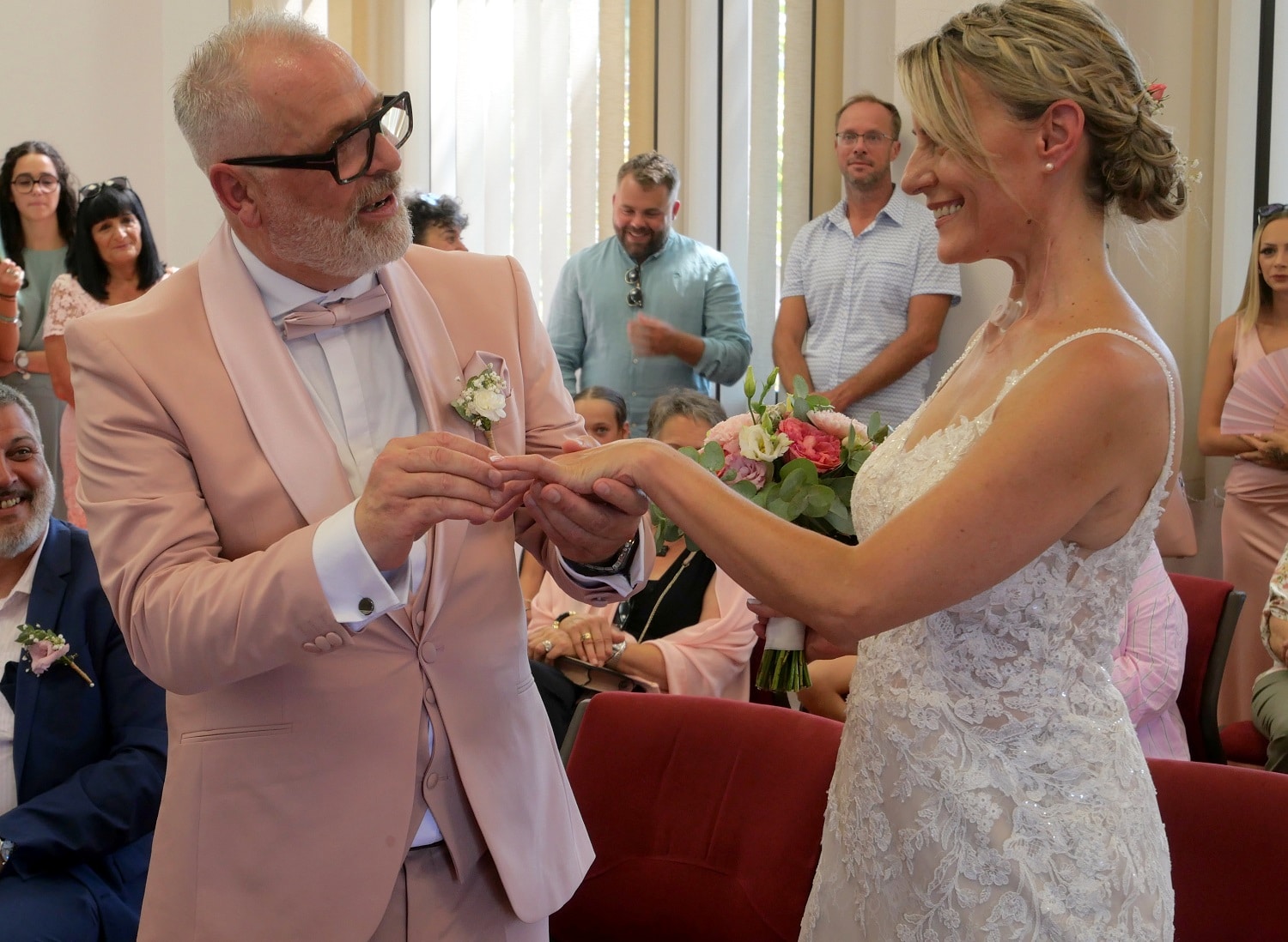 « En rouge et noir » chantait Jeanne Mas en 1986. « En rose et vert », c’était le code vestimentaire voulu par Fabienne et Paul pour leur mariage.
