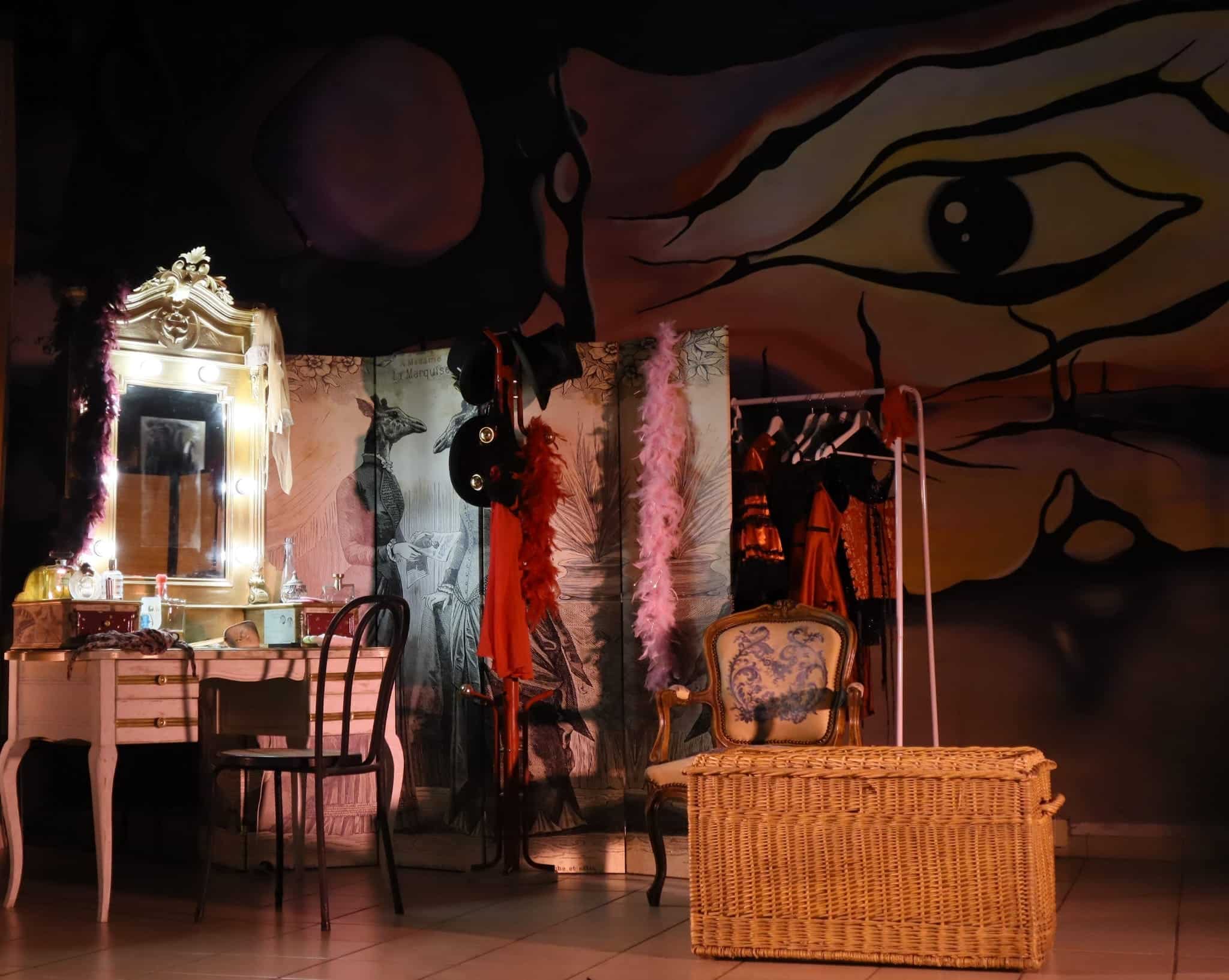 En 2001, on s’apprête à détruire un petit théâtre de quartier, style cabaret montmartrois, en vue d’un vague programme immobilier. Et pourtant, ce lieu hanté de souvenirs a vu défiler en près de cent ans d’existence bons et mauvais numéros, artistes oubliés ou vedettes en devenir, starlettes écervelées ou actrices confirmées. Mais l’action ne se déroule pas sur la scène devenue un vaste chantier, ni dans les cintres délabrés ou dans la salle dont les confortables fauteuils de velours rouge écarlate ont été bradés à un brocanteur de passage. Non. Entrons plutôt dans l’une de ses loges, endroit confiné, autrefois raffiné mais aujourd’hui délabré. Cet espace privé, éloigné des tumultes de la rue, de l’effervescence du plateau et de la sourde rumeur du public. Cet endroit unique où se réfugie le saltimbanque avant d’affronter la foule, où règnent à la fois le trac, la concentration et l’excitation de monter sur scène menant à l’ivresse des sens et faisant oublier le réel. La loge d’artiste devient ici le témoin de secrets féminins, tour à tour drôles, effrayants, pathétiques, tragiques ou mystérieux. De 1946 à nos jours, comédiennes, divas, artistes de music-hall, cantatrices, strip-teaseuses, etc… se préparent pour un ultime numéro. Rien que pour vous, le temps d’une représentation unique en son genre, une loge vous ouvre ses portes pour vous dévoiler ses secrets. Pénétrez dans l’intimité de ce théâtre, sentez son âme d’autrefois reprendre corps et surtout revivez six joyaux d’humanité meurtrie, six éclairs de vie ratée, gâchée ou rêvée… le tout composé au féminin !