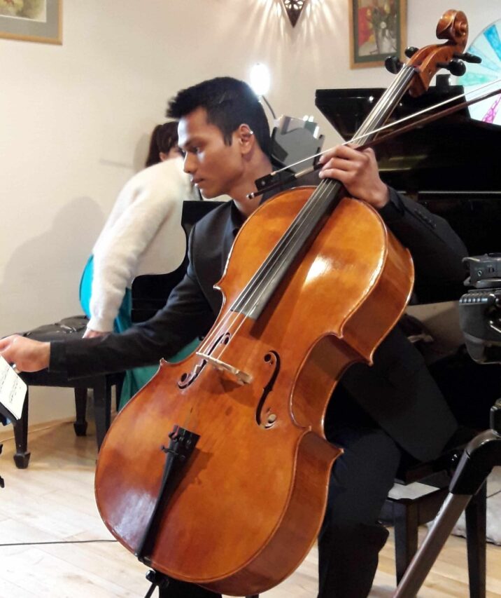 Antoine Moulard au violoncelle pour le vernissage de Annie Gabrielle Mallet à Saint Plancard