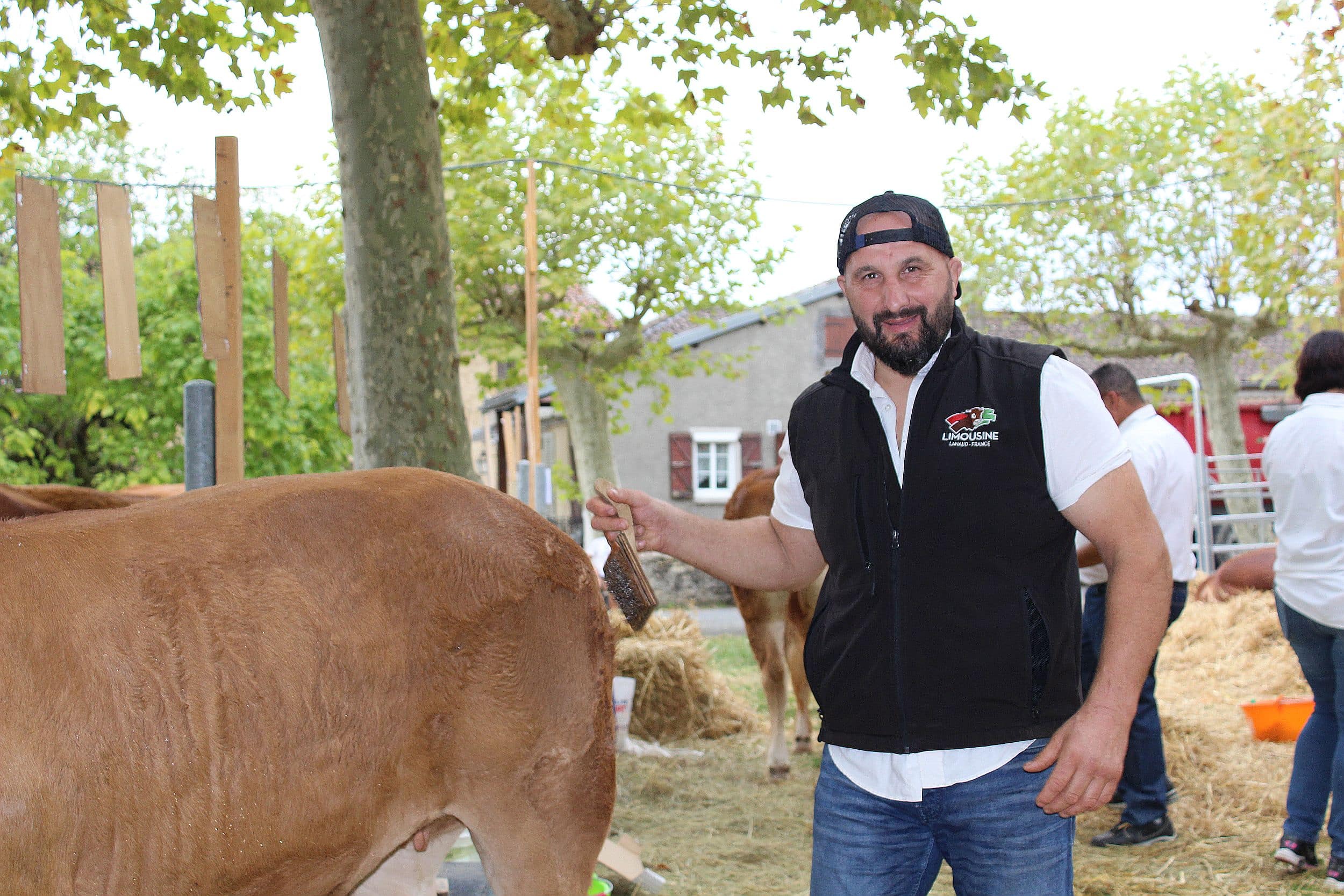 Sa casquette à l’envers bien vissée sur la tête, le charismatique Jérôme Bayle, égal à lui-même, était présent à Boulogne-sur-Gesse samedi 20 septembre aux premières heures de la matinée. Mais ce n’était pas en tant qu’emblème de la colère agricole que Jérôme avait fait le déplacement depuis sa ferme de Montesquieu-Volvestre. Pendant tout le weekend aux Journées du Boulonnais, grande foire agricole triennale du Comminges, il présentait plusieurs magnifiques bêtes de son élevage de Limousines. C’était sa deuxième participation à cet événement agricole de premier plan dans la région. Avec sa simplicité et sa gentillesse coutumière, Jérôme Bayle s’est prêté au jeu des photos, interrompant la séance de toilettage minutieux avant la présentation dans le ring.