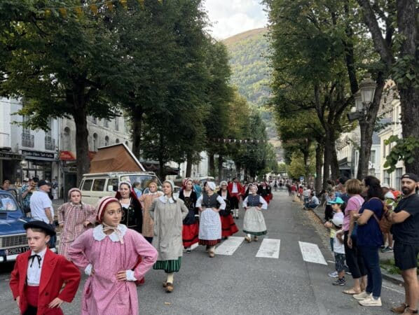 La météo n’a pas été très sympa pour les enfants et les nombreuses familles, qui malgré la pluie et le froid avaient fleuri les chars confectionnés par les ateliers municipaux. La chaleur était dans les cœurs, et l’extrême jovialité des enfants qui saluèrent, comme il se doit, monsieur le maire à la tribune officielle, en l’honorant copieusement de fleurs. Toujours cette belle ambiance de bataille de fleurs, dans les rues, avec la musique du groupe Illixon (émanant de la fanfare luchonnaise).