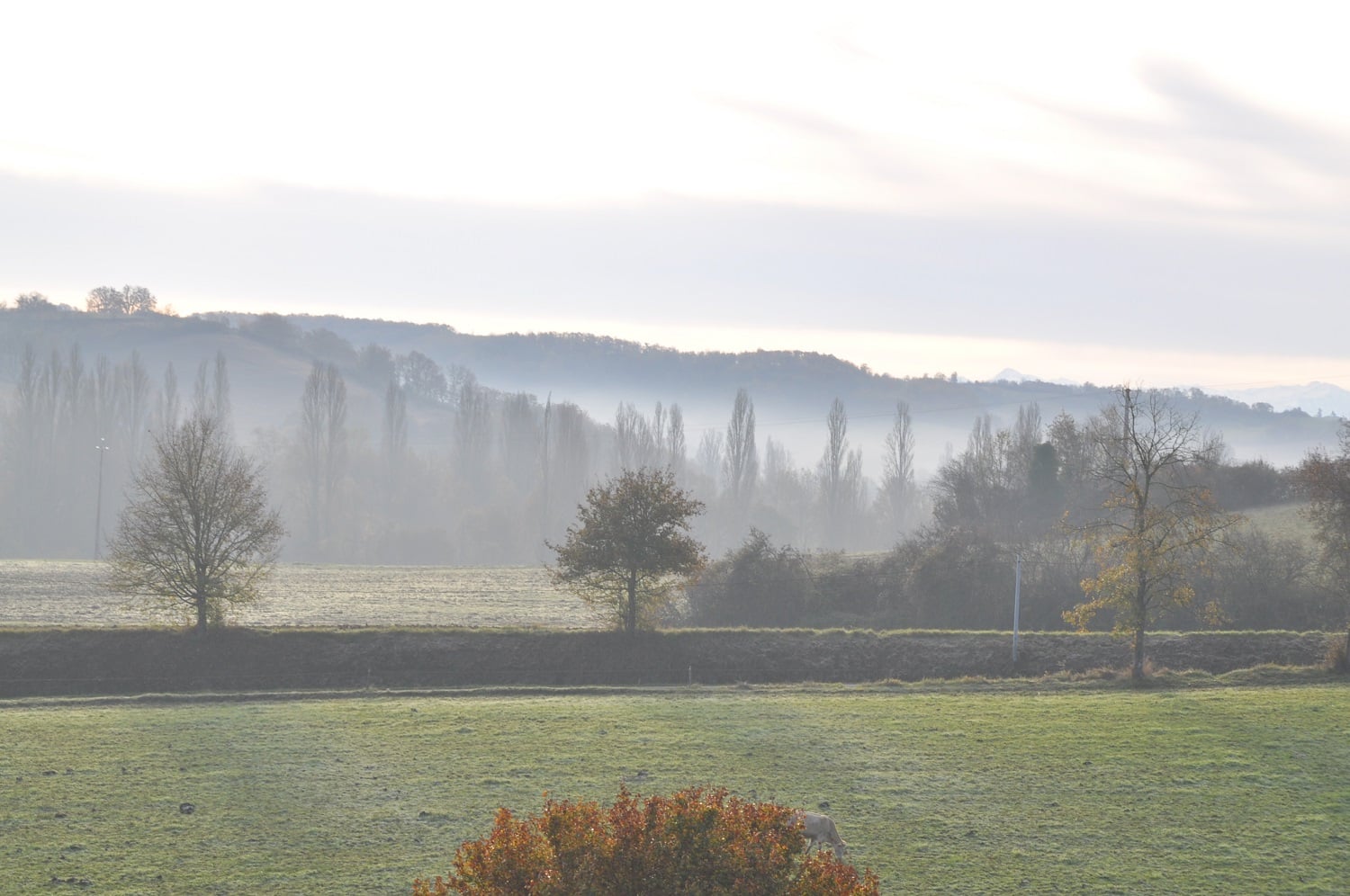 Tourner à gauche sur le chemin qui longe la rivière sur 500m . Monter à droite, passer devant la Plagne, continuer par la route qui descend vers la D12 et l’emprunter à droite sur 100m.