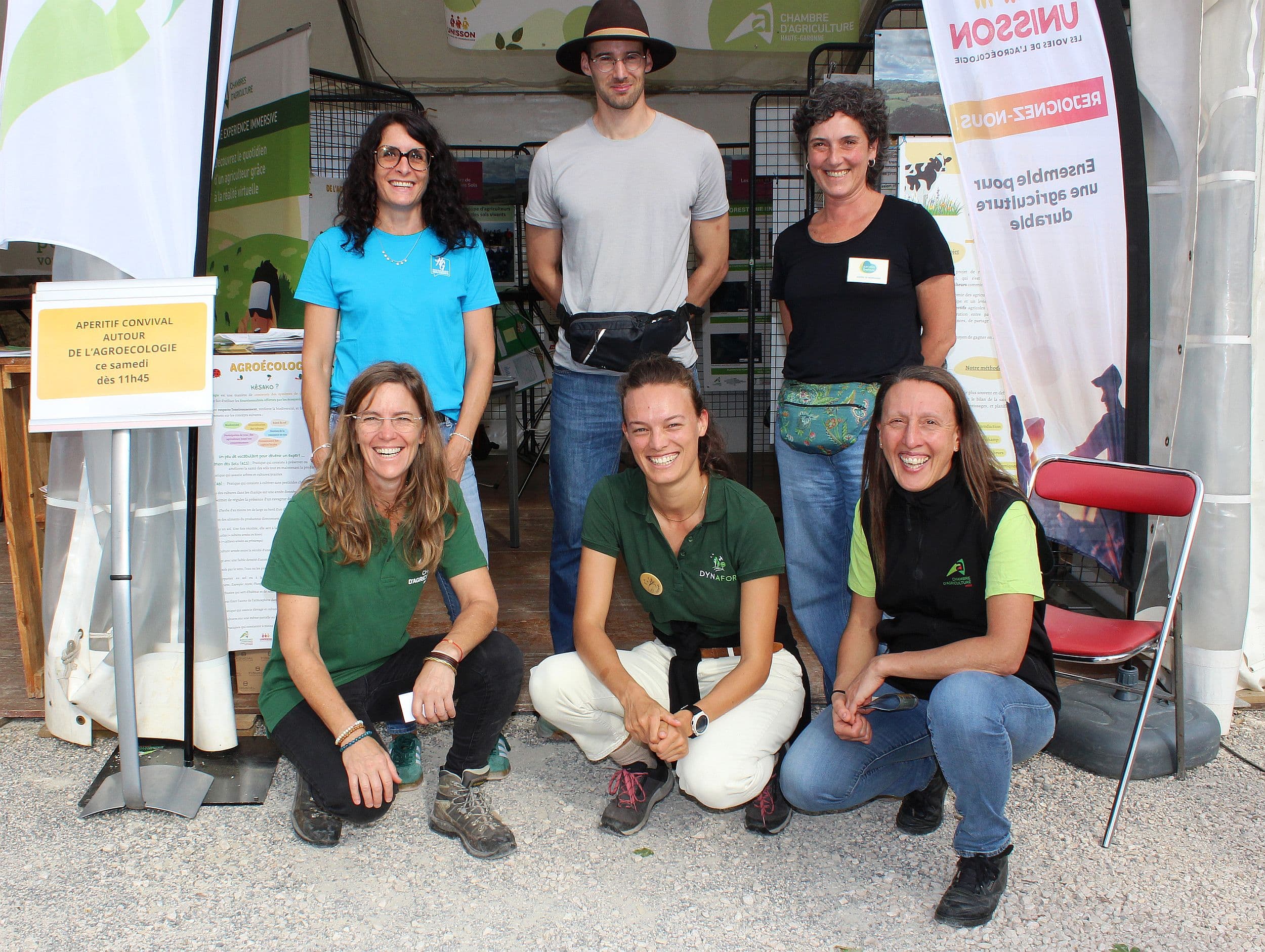 Au stand agroécologie : Carole Mérienne chargée de mission agroécologie à la Chambre d’Agriculture 31, Caroline Mouille chargée de projet INRAE, Aude Pelletier Chambre agriculture 09, Soizic Lenormand Racines Fertiles, Mathieu Vernier Arbres et Paysages d’Autan.