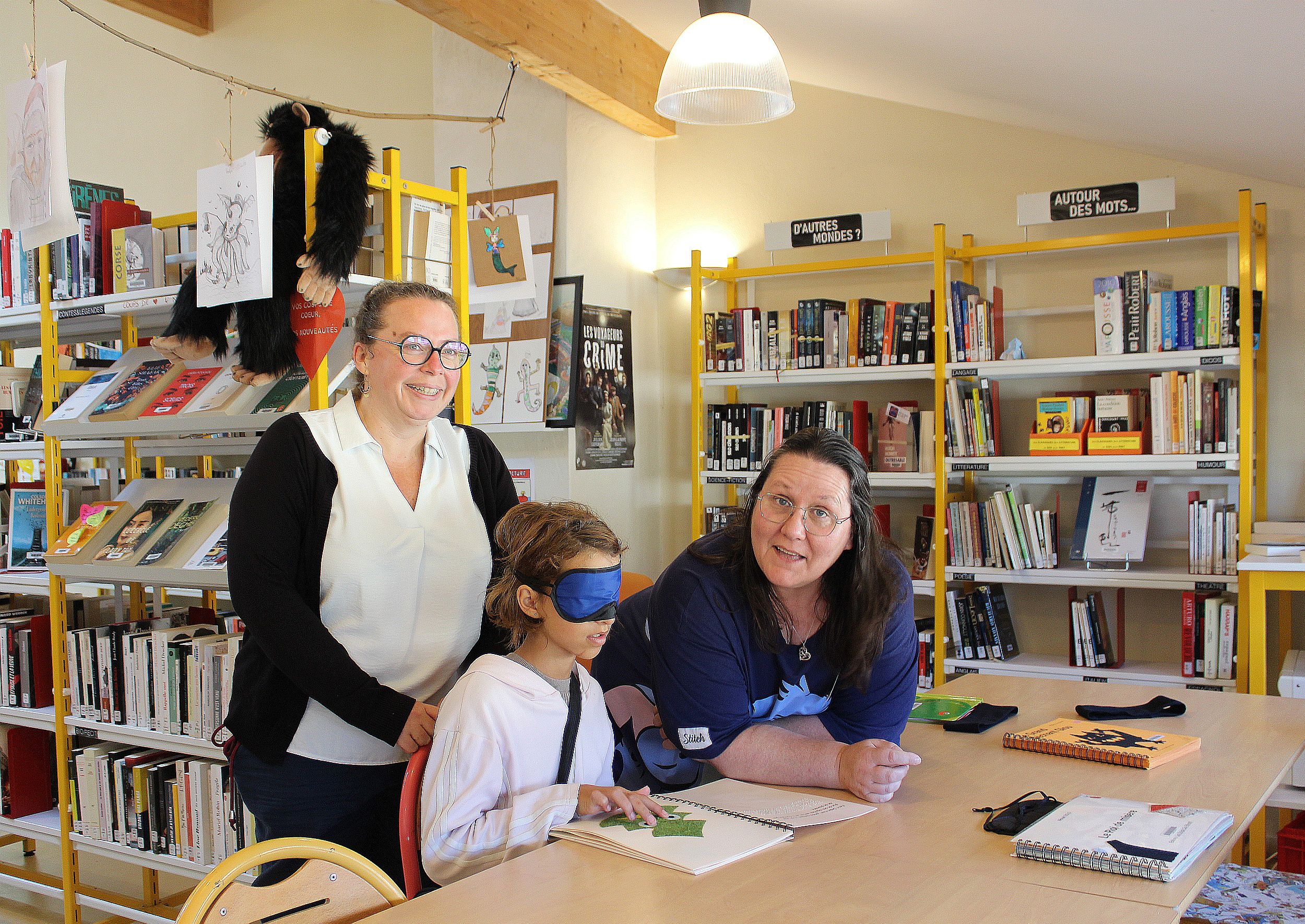 A l’étage de la médiathèque, Bénédicte orchestrait divers ateliers : une expérience sensorielle qui sensibilisait au handicap visuel, avec des livres en brailles et animée par Angélique bénévole de la bibliothèque, un conte kamishibaï pour les tout-petits avec Cyrielle, de la ludothèque de Boulogne. La Place d’Armes et la MJC offrait des espaces multiples et colorés, et le stand de crêpes tenu par Marie et Émeline de l’APE (association des Parents d’Élèves) embaumait l’atmosphère. Un peu plus loin, dans la salle du Château, le tournoi d’échecs réunissait les amateurs chevronnés ou débutants, pendant que le Café des Possibles de la MJC accueillait les visiteurs avec son hospitalité coutumière.