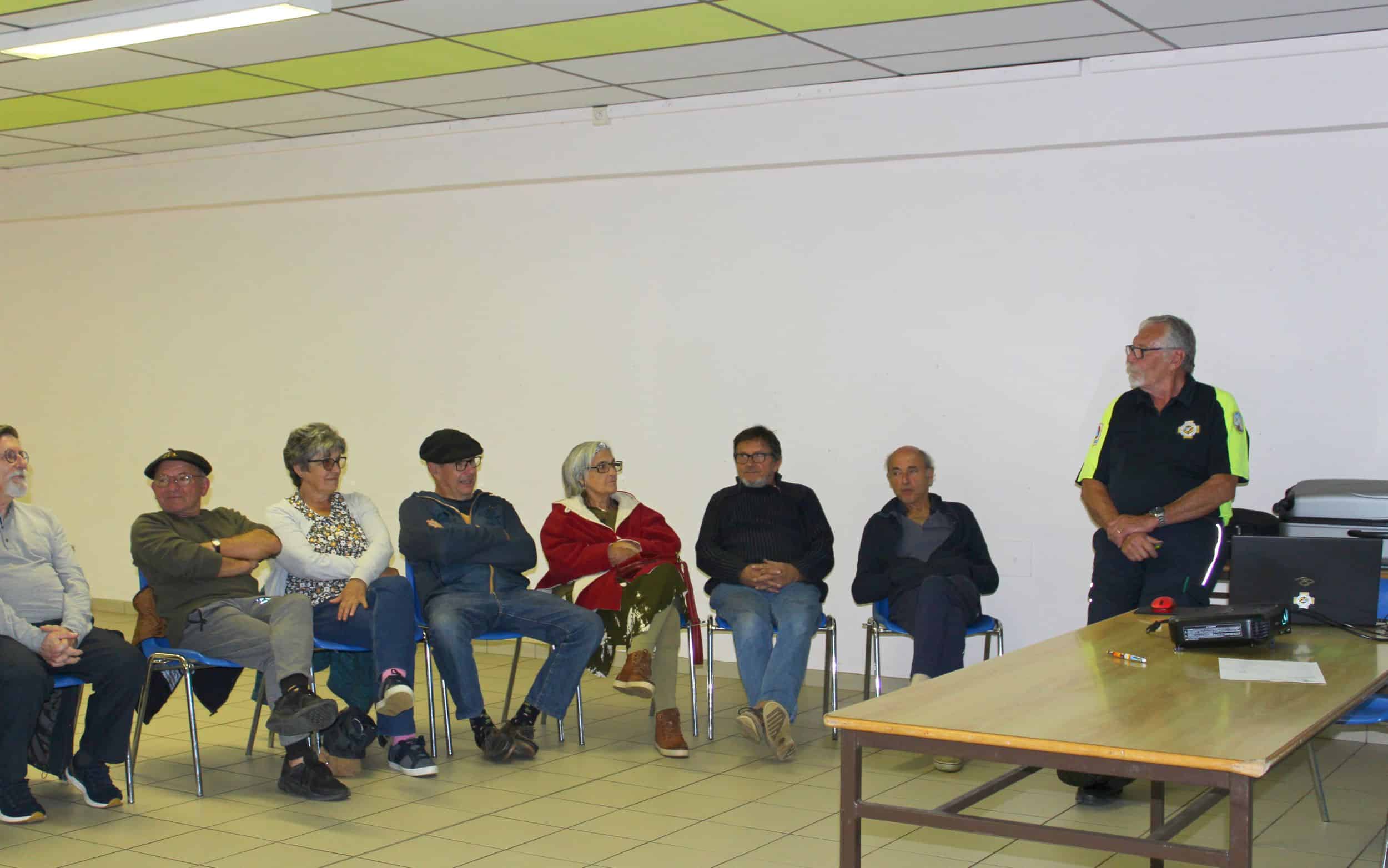 Devant l’écran, René Prunet, de l’antenne des Hautes-Pyrénées Secouristes d’Uglas et du Plateau, a déroulé le programme de l’initiation. En appui de la théorie, des exercices en direct ont été accomplis, entre stagiaires pour la position latérale de sécurité, et avec des mannequins pour le massage cardiaque et le bouche-à-bouche.