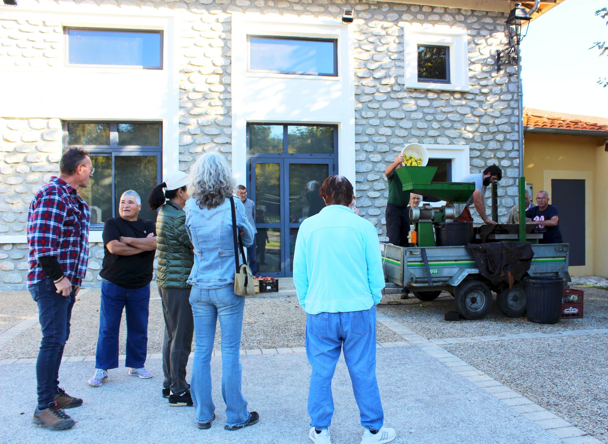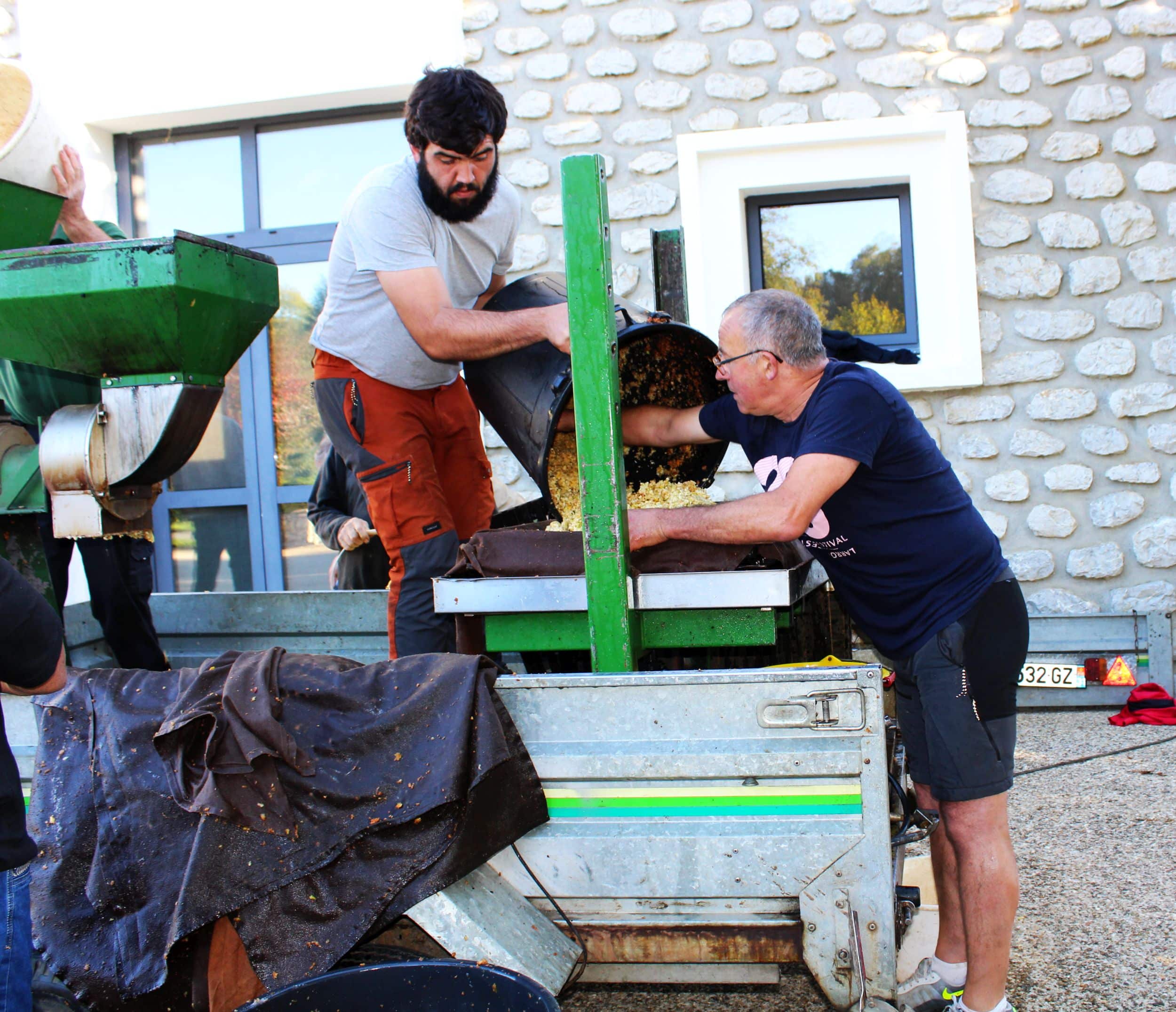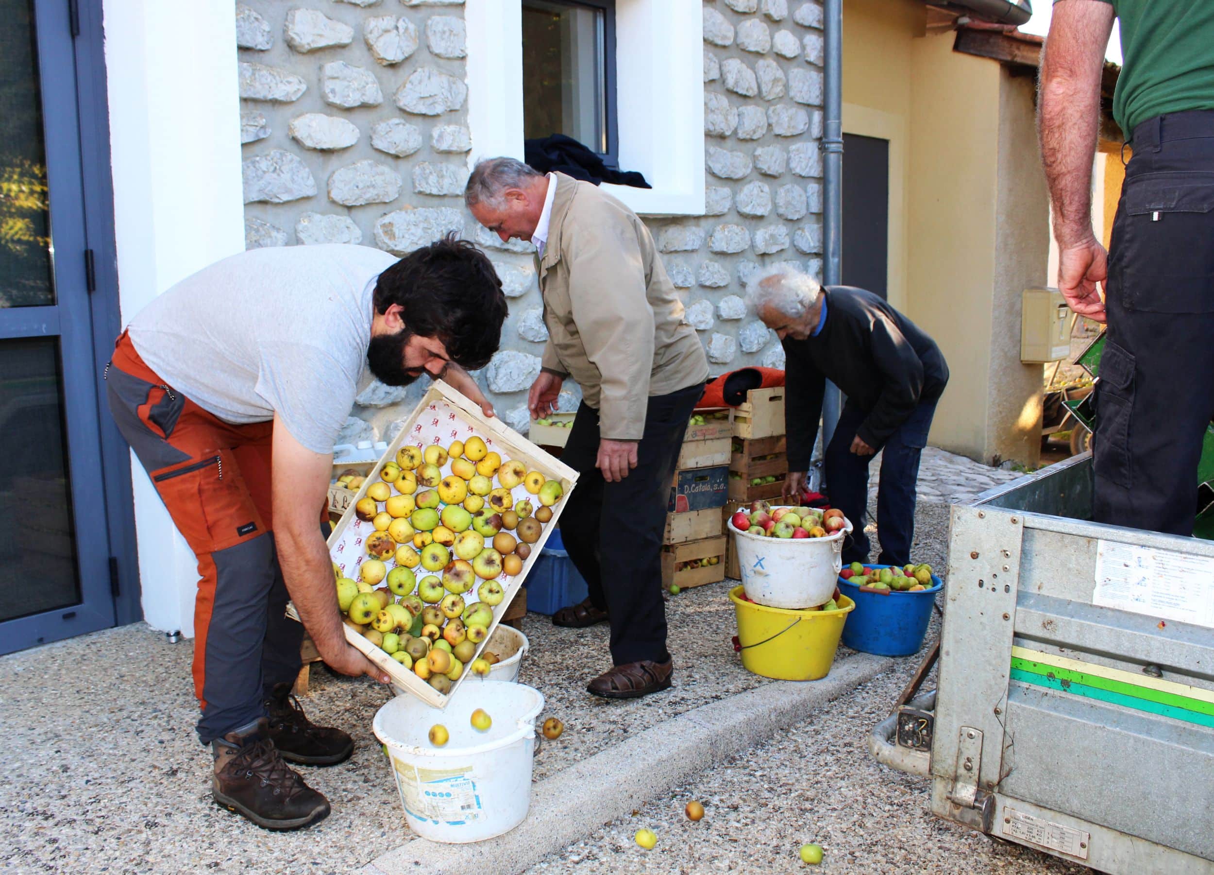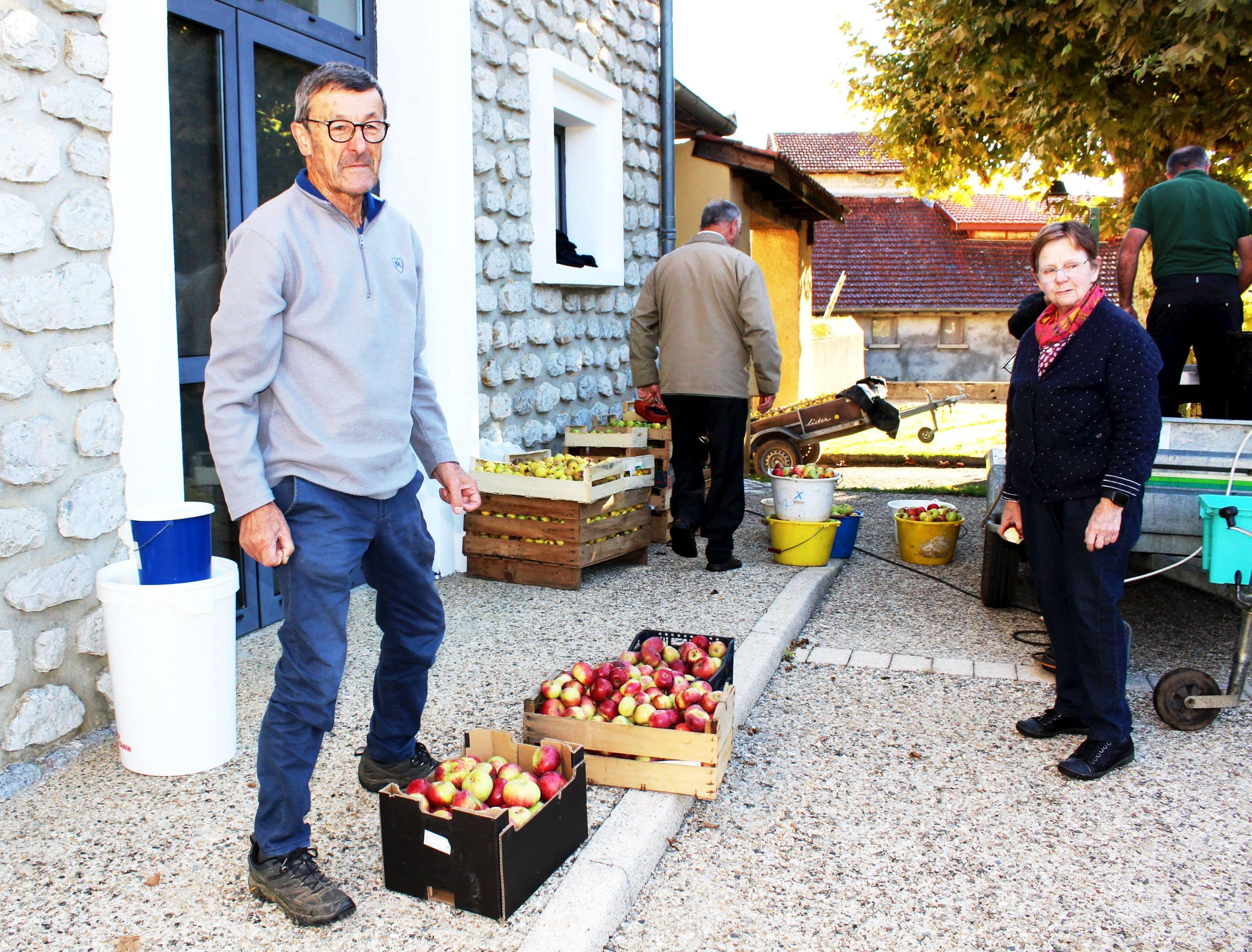 La vénérable machine a broyé plusieurs centaines de kilos de fruits venus des vergers voisins, cueillis par les bénévoles du Foyer ou apportées par les particuliers, pour donner des hectolitres de bon jus frais. Les gourmands avaient apporté leurs bouteilles et bidons pour les rapporter remplis à la maison et faire le plein de bonnes vitamines.