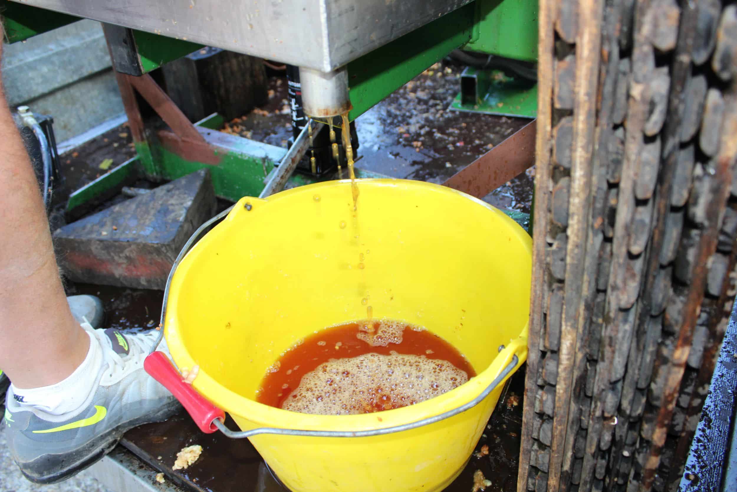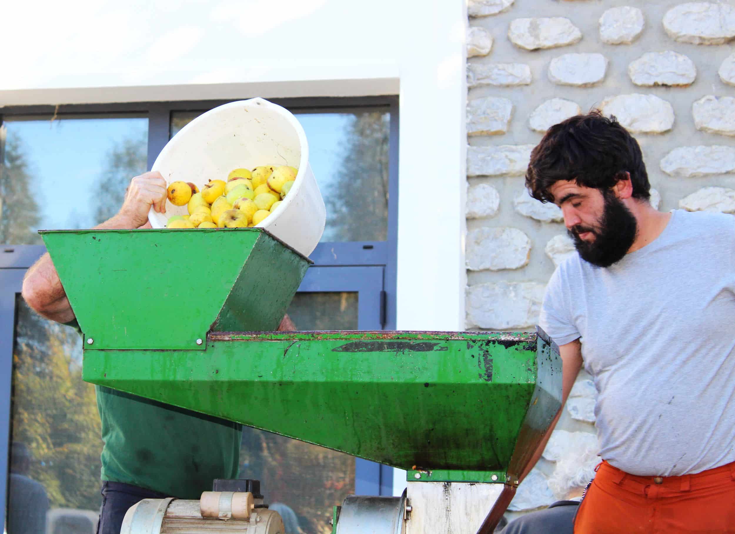 Pressage à l'ancienne des pommes à Larroque, pour tirer le bon jus frais.