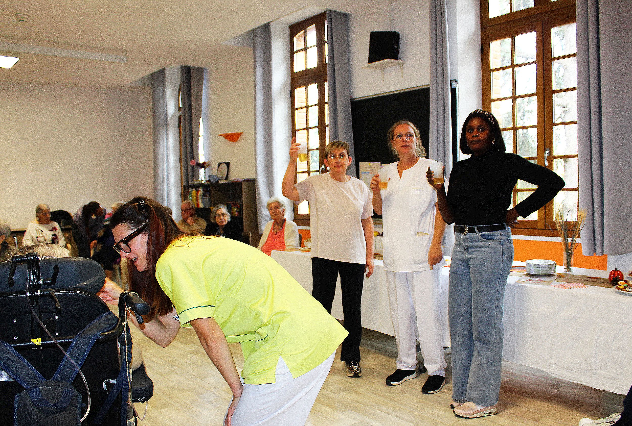 Mercredi, séance de cinéma et préparation du pop-corn dégusté pendant la projection. Jeudi 9, l’Italie était à l’honneur, avec atelier pizzas individuelles et dégustation collective ensuite. Et vendredi 8, l’apothéose avec la grande fête finale. Accueillis par Clémence, à laquelle s’ajoutaient Lauriane, Charlotte, Yacine, Sabine, Jade, et les autres, les résidents, les familles et les équipes étaient conviés tout l’après-midi à déguster de bons produits locaux. Une semaine du goût chaleureuse et festive à l’Ehpad Faux Bourg Saint-Antoine, à renouveler sans modération.