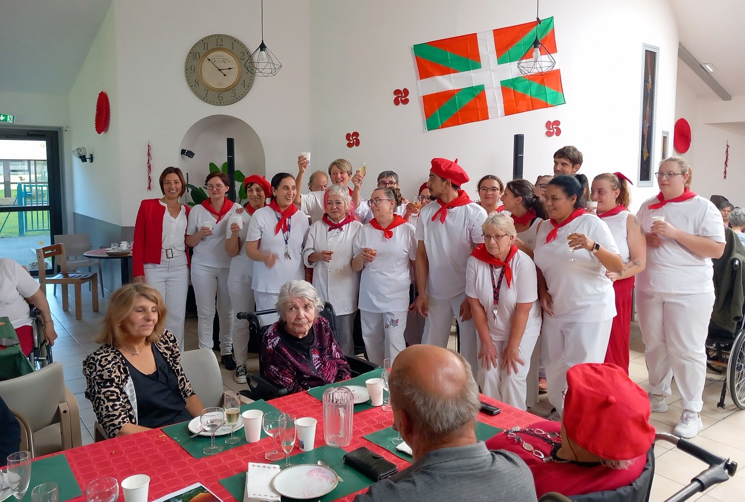 Une ambiance festive et chaleureuse régnait tout au long de la journée. Le personnel, entièrement revêtu de tenues basques, n’hésitait pas à lancer un Paquito endiablé, entraînant les résidents
