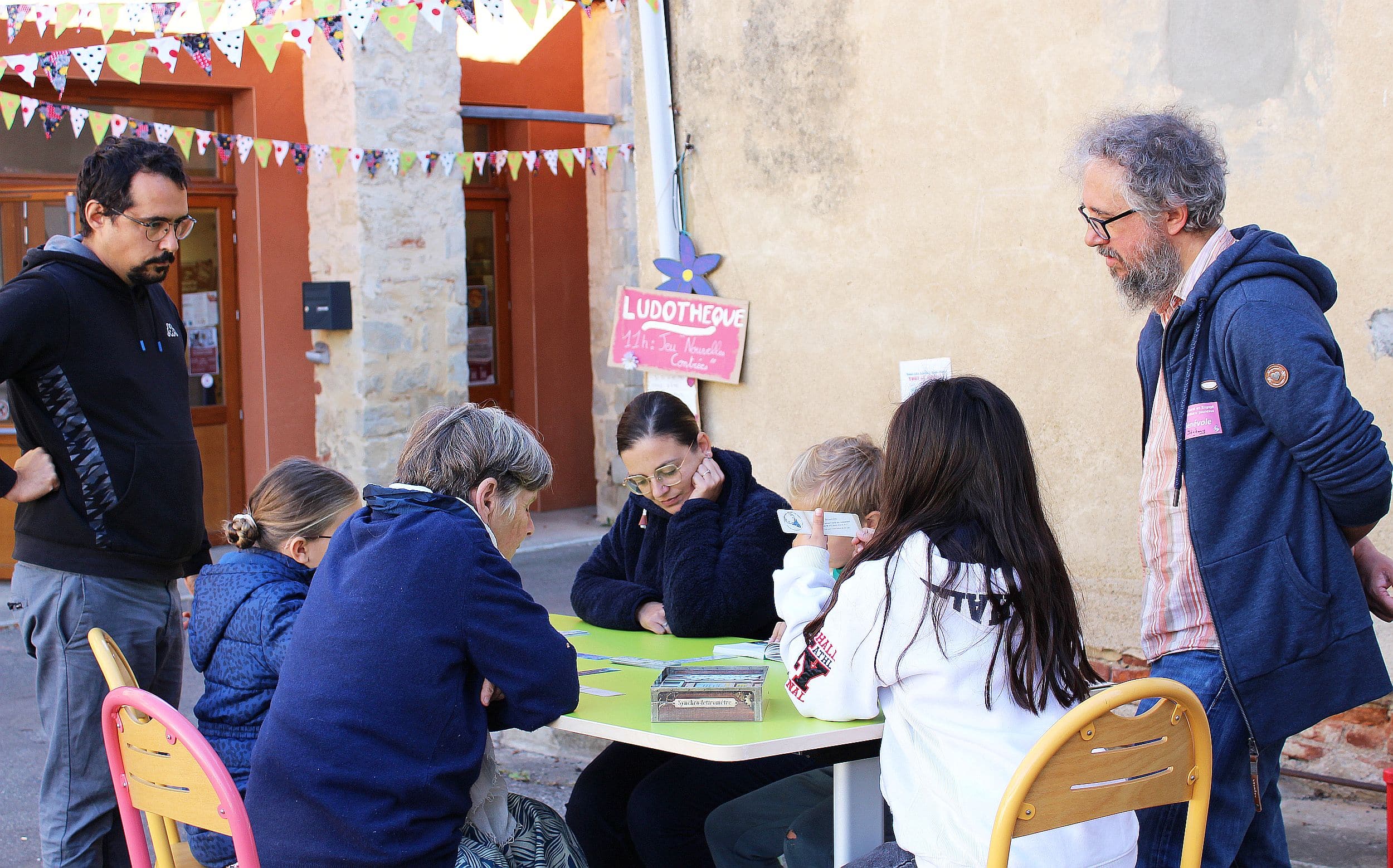 L’après-midi la séance de lecture dessinée musicale a attiré petits et grands en nombre, avec Gaya Wiesniewsky au dessin, Agnès et Arielle à la lecture, Antoine à la musique et Thaïs qui traduisait le conte en langue des signes. Les visiteurs ont aussi adoré participer à créer une histoire avec Myrtille et ses story cubes, petits dés porteurs d’idées pour commencer un texte. Un amusant exercice collectif pour titiller l’imaginaire et la créativité. Sans oublier le jeu Nouvelle Contrée, qui permet de découvrir un roman à travers une passionnante aventure.