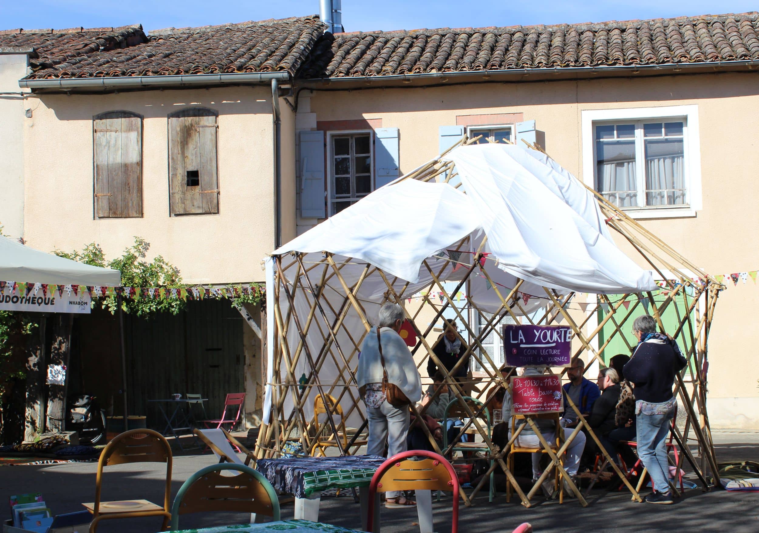 Un Festival Rural Engagé de littérature jeunesse, ludique et futé. (table ronde sous la yourte avec Valérie de Radio Coteaux)