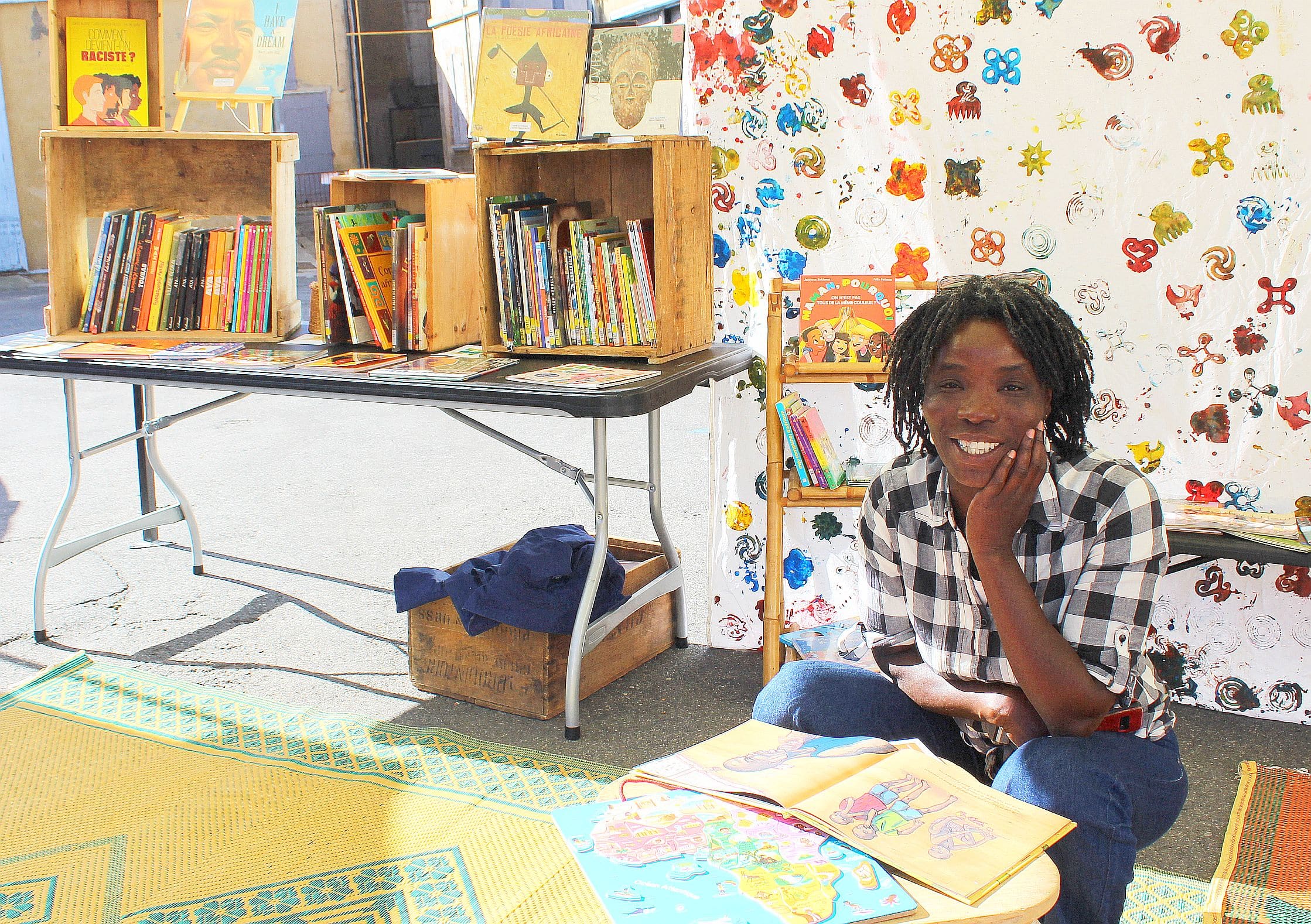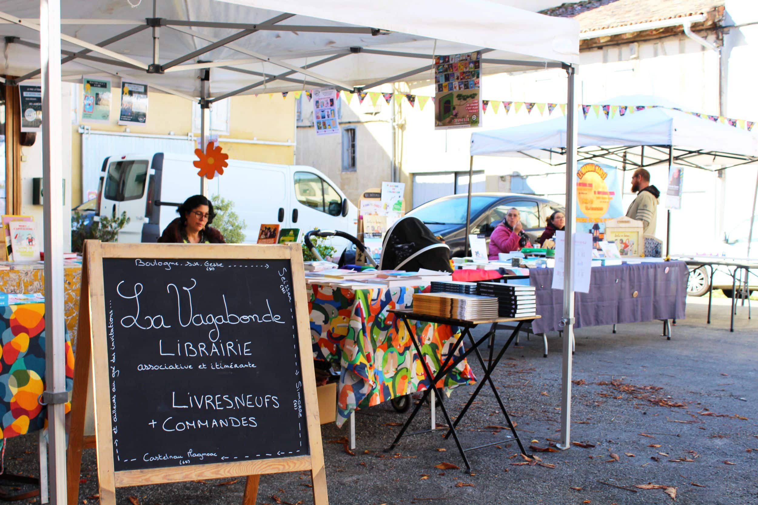En déambulant d’un stand à l’autre, on s’essayait à l’atelier d’écriture, pour taper à la machine en inventant textes et poèmes ; on rencontrait deux illustrateurs des Editions des Trois Canards pour un atelier BD ; on s’arrêtait devant les petits rayonnages bien fournis de la Vagabonde Librairie ; on découvrait l’association Mon super Pouvoir et ses bonnes idées de divertissements ; on discutait avec Térésah qui diffuse la culture africaine via sa bibliothèque itinérante N’KABOM ; on s’asseyait sous la yourte installée au milieu de la place pour une table ronde autour du processus de création littéraire, animée par Valérie de Radio Coteaux.Yourte qui servait aussi de coin lecture confortable.