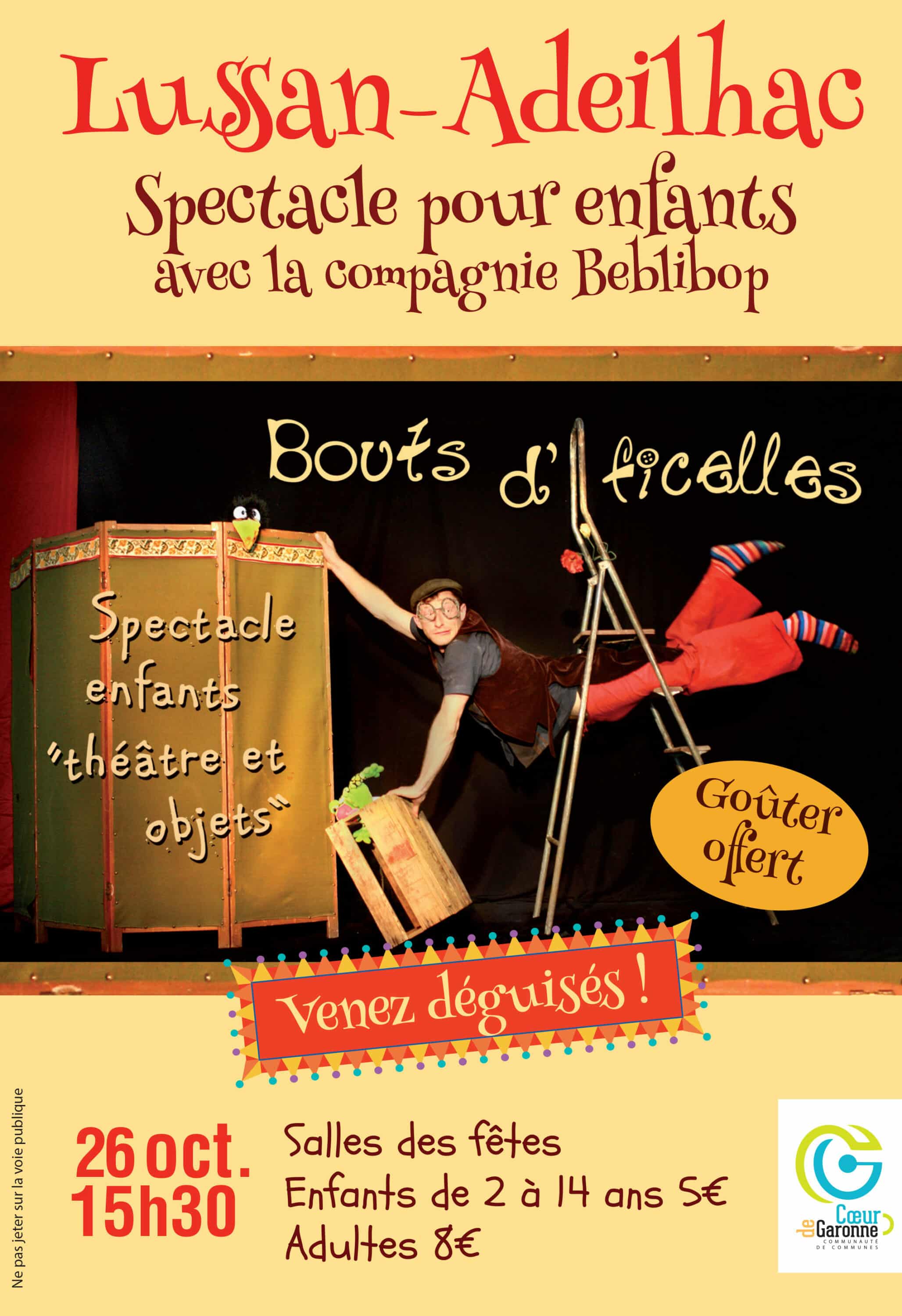 Le foyer rural de Lussan-Adeilhac accueillera dimanche 26 octobre 2025 à 15h30 la compagnie Beblibop qui propose divers spectacles, en intérieur ou en extérieur, faisant intervenir du théâtre d’objets, du clown et des arts du cirque. La compagnie Beblibop, basée sur Toulouse, à vu le jour grâce à la rencontre de deux artistes passionnés des arts du cirque et des arts de la rue.