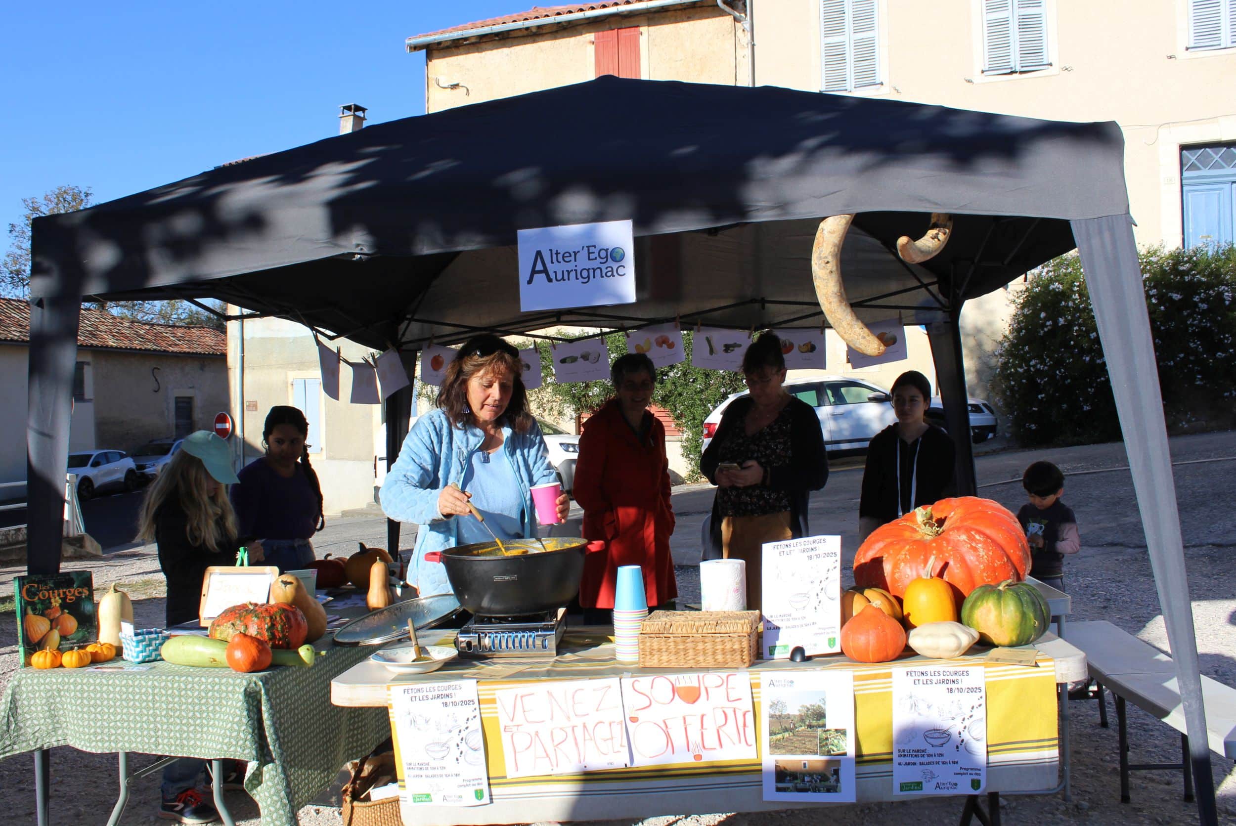 Une délicieuse odeur de bonne soupe faisait déjà frémir les narines de chalands de bon matin, sur le marché d’Aurignac samedi 18 novembre. Sur le stand d’Alter Ego, une dégustation des courges et autres productions des jardins partagés démontrait la vitalité de ce projet porté par l’association avec le soutien de la municipalité.