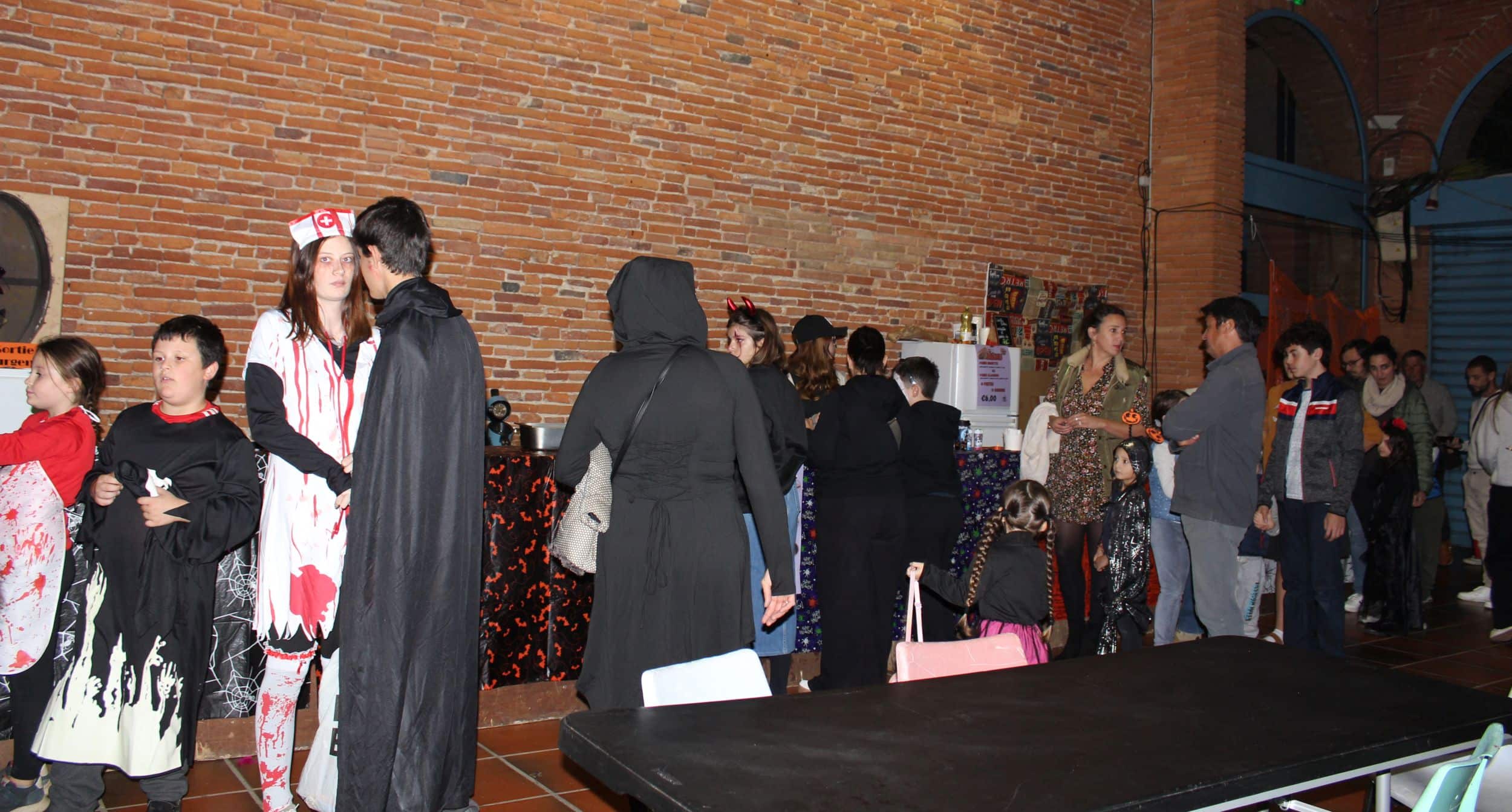 Devant les portes, à 18h vendredi soir, la file d’attente était longue et pittoresque, squelettes, sorcières, zombies, monstres et autres Frankenstein et Freddie sanglants piaffaient d’impatience. A l’intérieur, Carine et son équipe ont orchestré la soirée de main de maître, et la buvette attendait de pied ferme les gourmands pour les rafraîchir et les sustenter après les épreuves. Une ambiance de fête et d’émulation qui s’est renouvelée le lendemain samedi, à la découverte d’un loup-garou en liberté ! Une initiative formidable qui ancre la jeune association Mon Super Pouvoir dans le paysage festif et culturel du territoire d’éclatante manière.