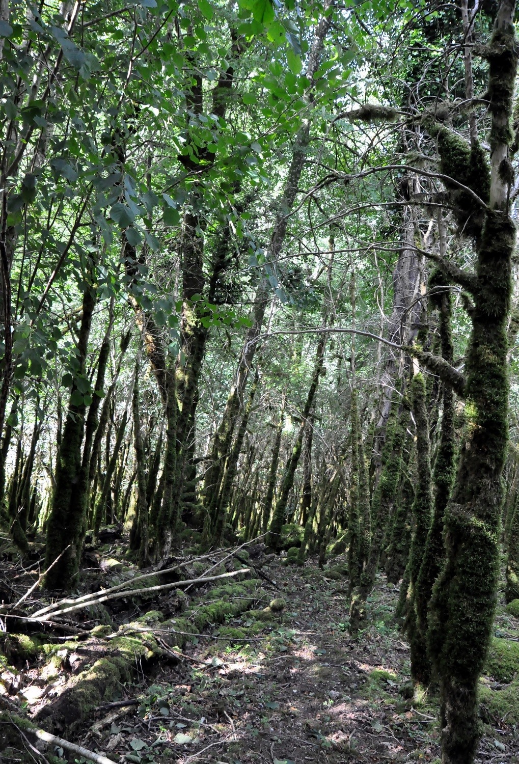 Entrer dans la forêt recouverte de mousse et continuer toujours tout droit vers l’Est avec des montées successives.