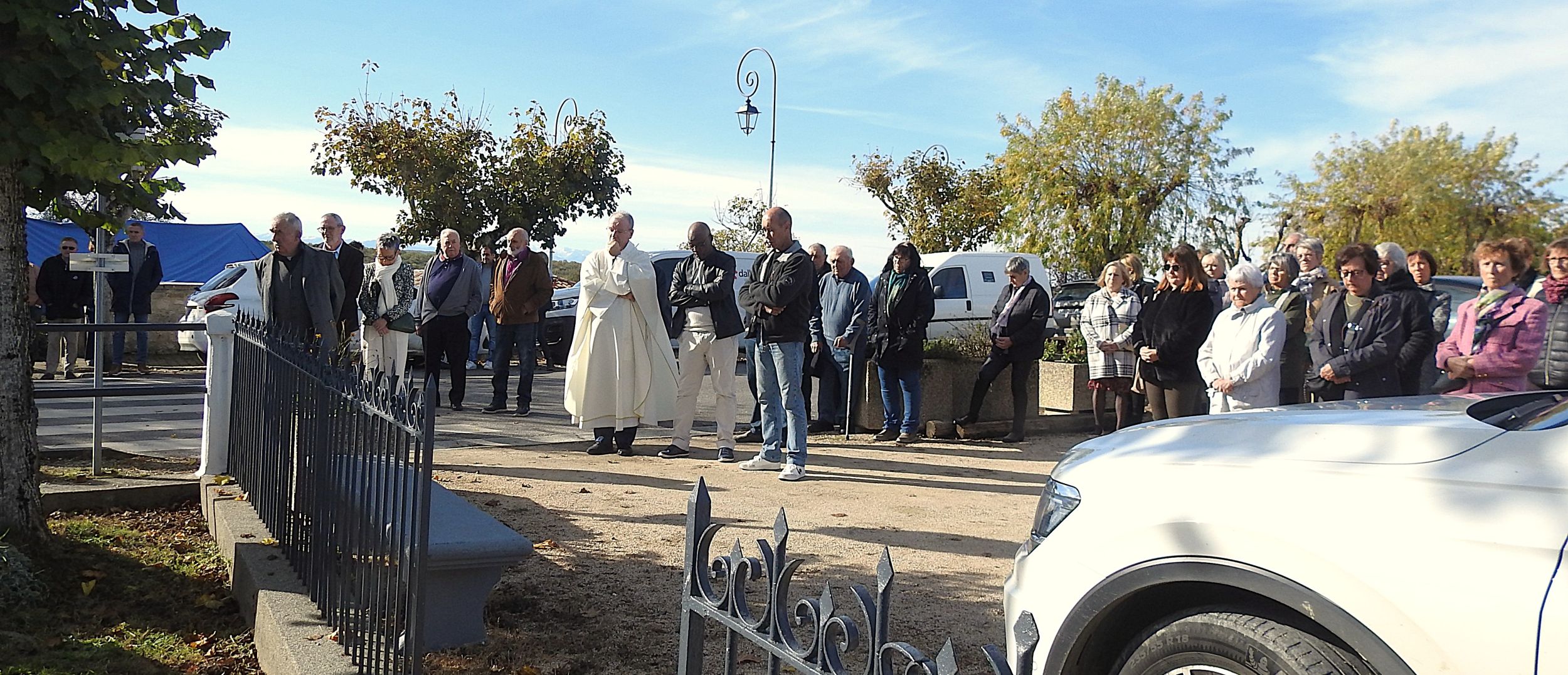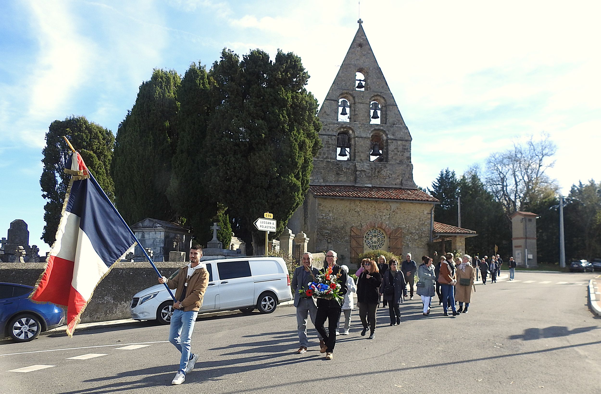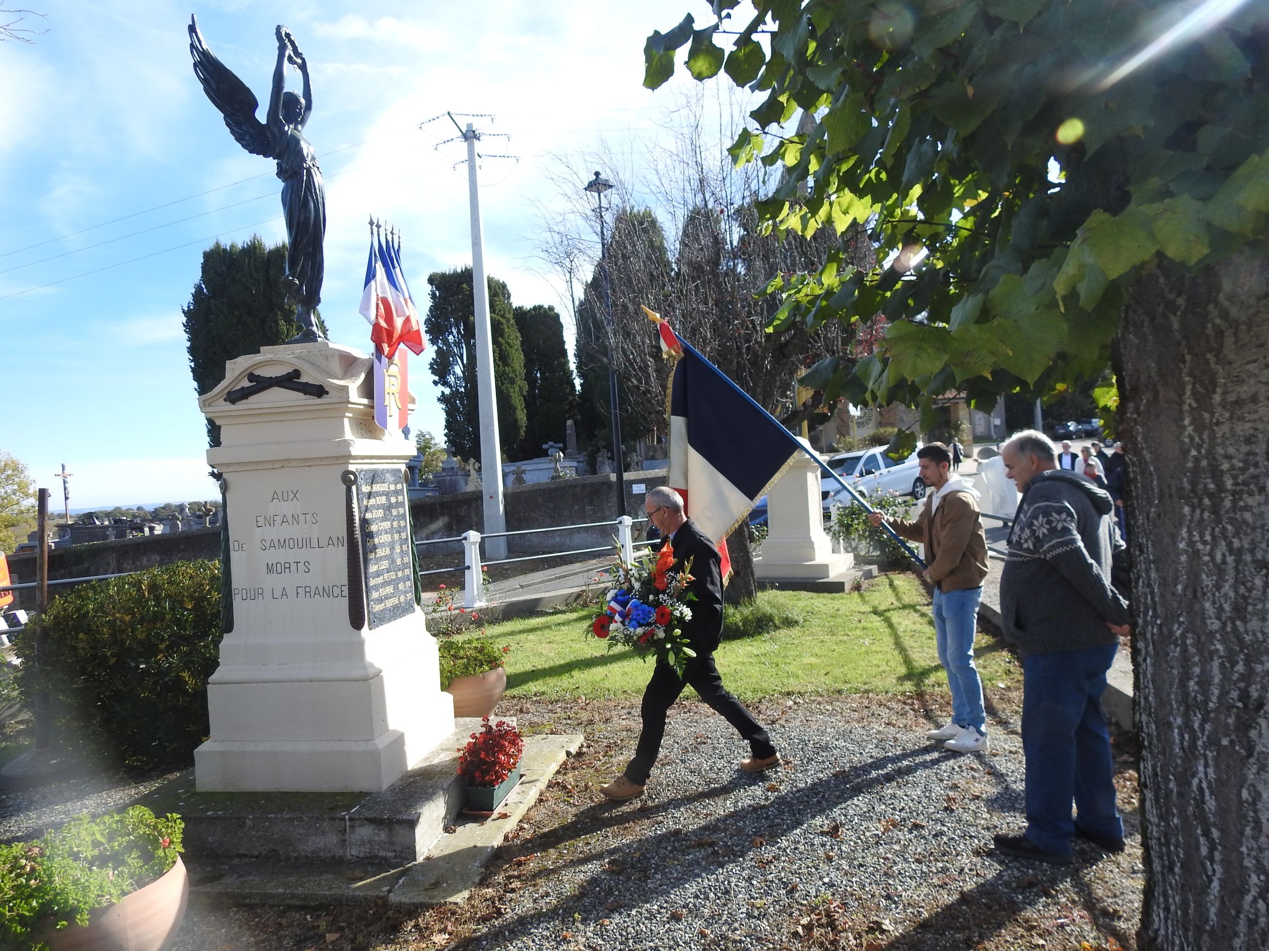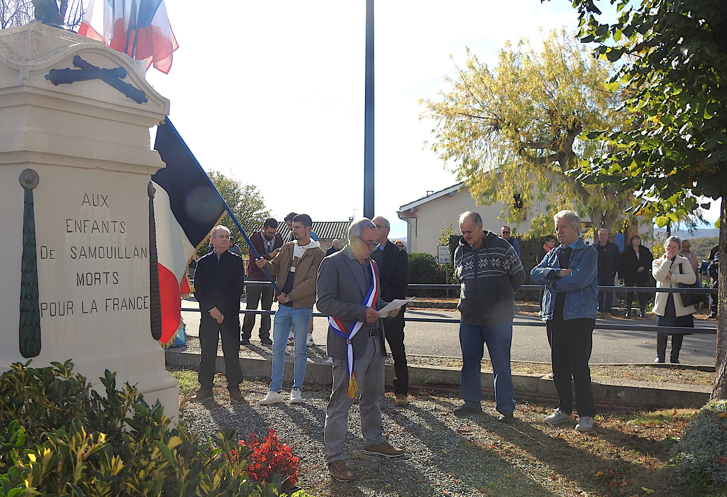 Et les manteaux étaient bien nécessaires sous le frais soleil d’automne, pendant que le maire Jean-Paul Dangla, entouré de ses conseillers, rappelait le message du gouvernement dans son discours, au pied du monument aux Morts. Les habitants étaient venus nombreux se recueillir pour saluer le sacrifice des enfants du village, morts au champ d’honneur.