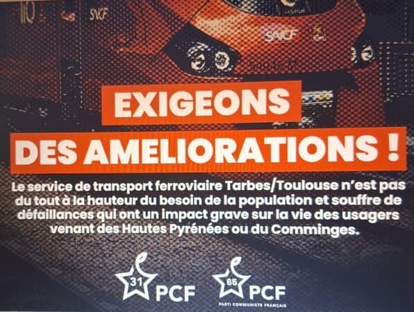 Le Parti communiste de la Haute-Garonne et des Hautes-Pyrénées mèneront de concert, le mardi matin du 18 novembre 2025, une action de revendication d’améliorations concrètes du service de transport ferroviaire entre Tarbes et Toulouse.