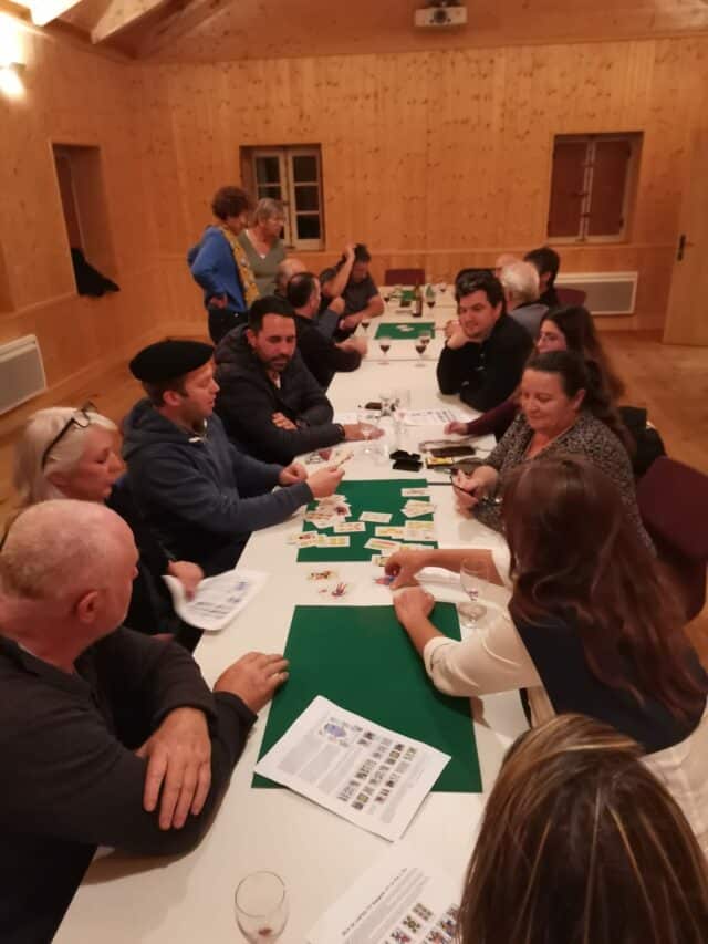 Jean-Luc membre actif de la Pastorala, nous raconte : « Une quinzaine de personnes ont partagé un repas tiré du panier enrichi d’une soupe préparée avec amour par Martine. Le moment venu du jeu, certains aguerris au Truc i flor, d’autres débutants.es ou complètement néophytes ont donc pu former deux tables et une table de jeu de société qui s’est organisée également. »