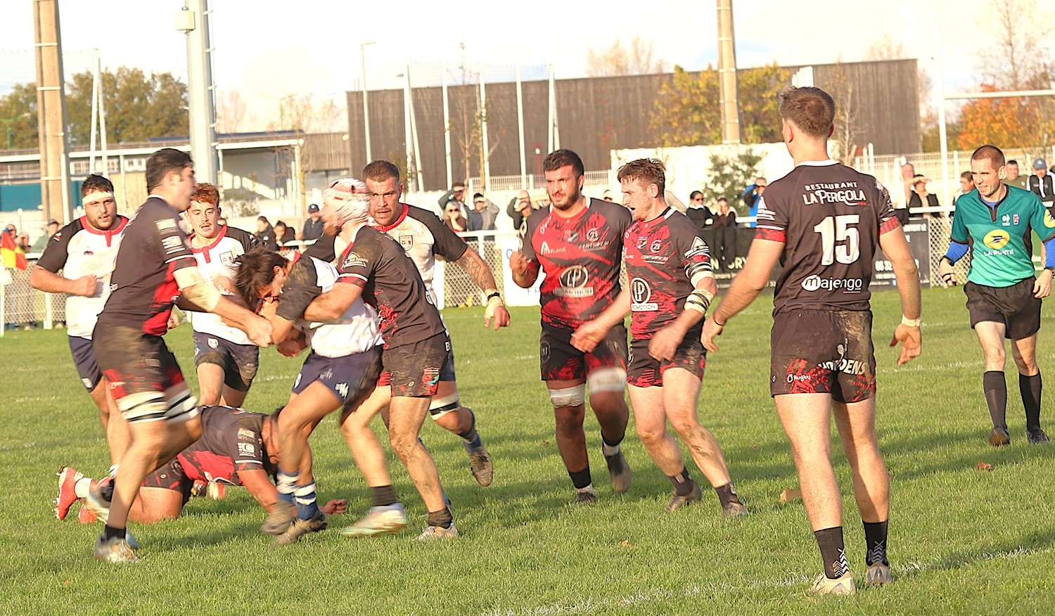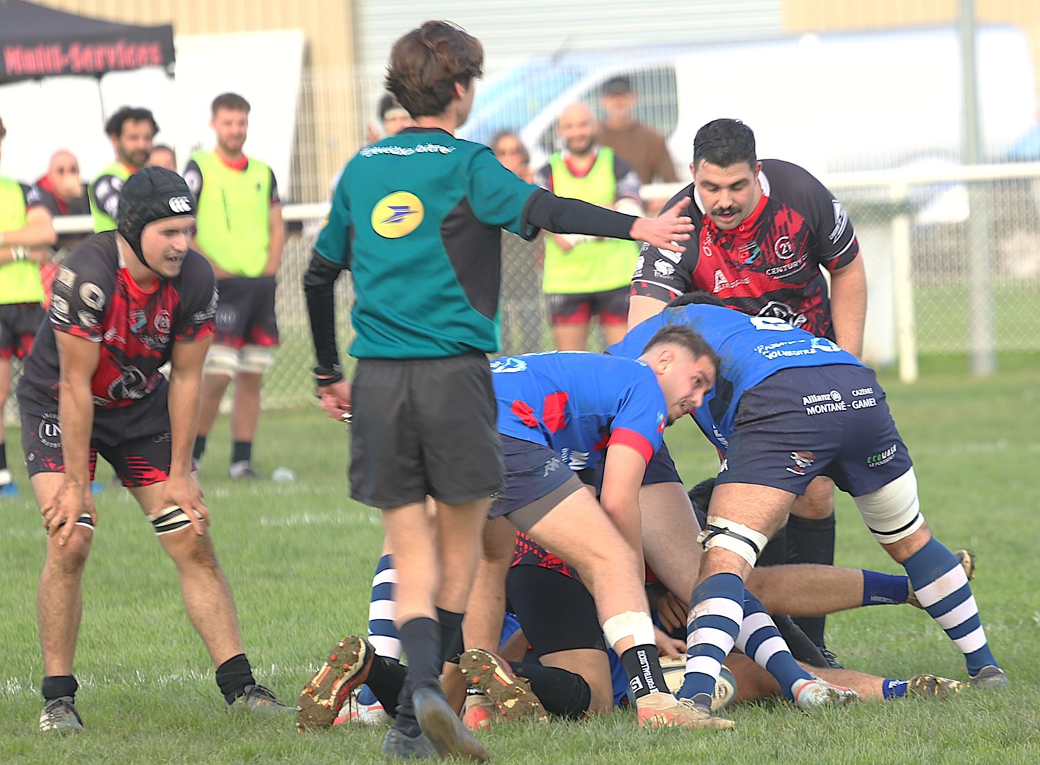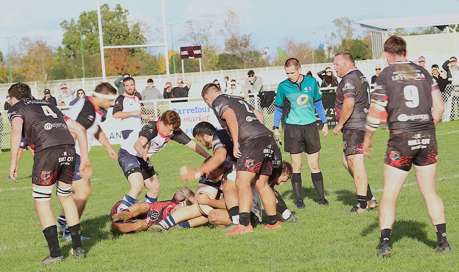 Les joueurs de la Saudrune ont inscrit cinq essais, dont ceux de Willian Soko (22ème), Arnaud Desbrosses (29ème), et Julien Sauter (53ème et 66ème), ainsi qu’un essai de Théo Deilhes (73ème). Lucas Enrique a ajouté 4 transformations et 2 pénalités à la marque.