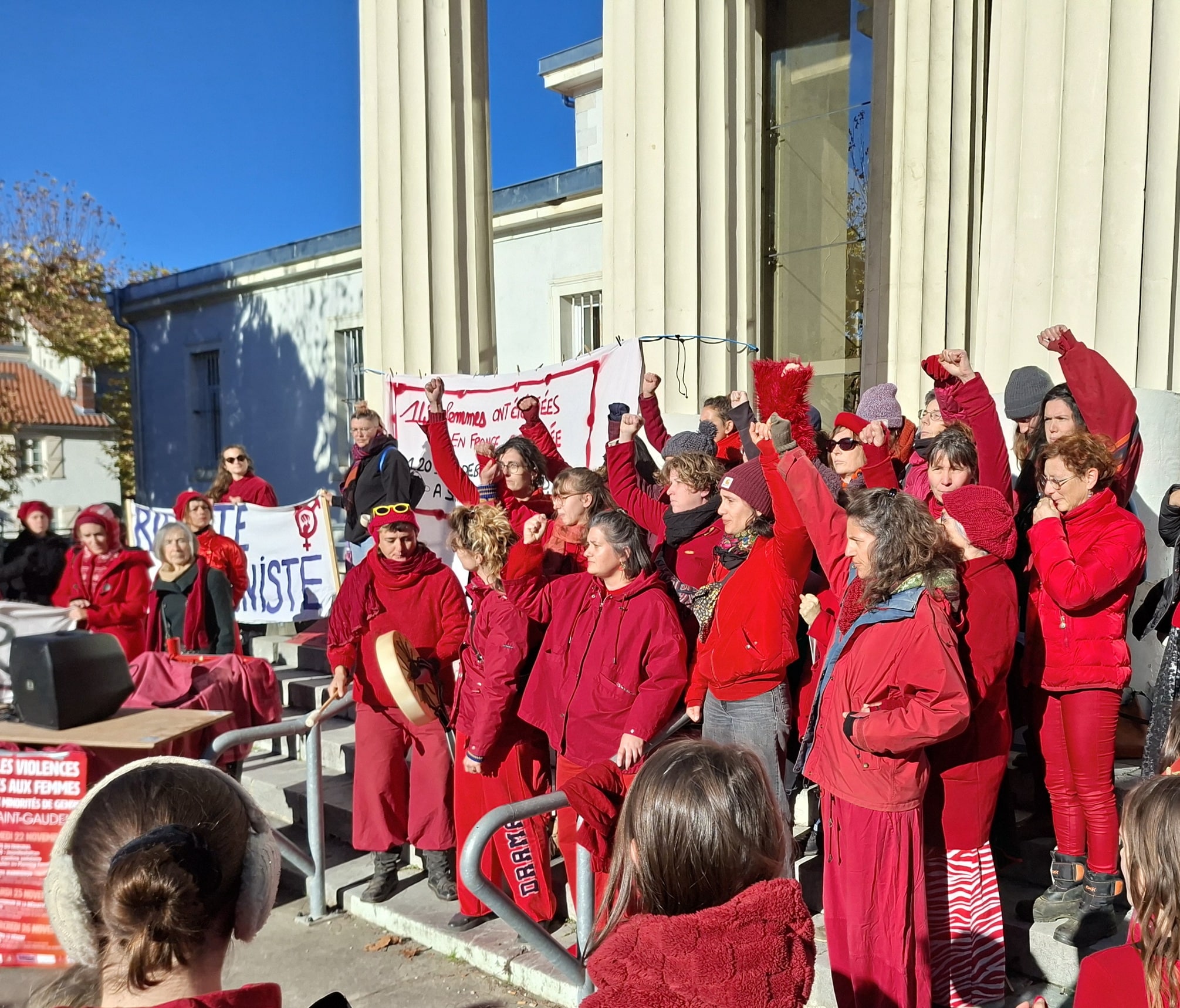 Les manifestantes et manifestants ont ensuite défilé en cortège dans les rues de Saint-Gaudens, dans les pas de la chorale féministe du Comminges. Avant de se retrouver entre 12h00 et 13h00 devant le tribunal et une cantine solidaire en soutien du Planning Familial, dans la continuation d’une journée d’hiver bien fraiche mais ensoleillée.