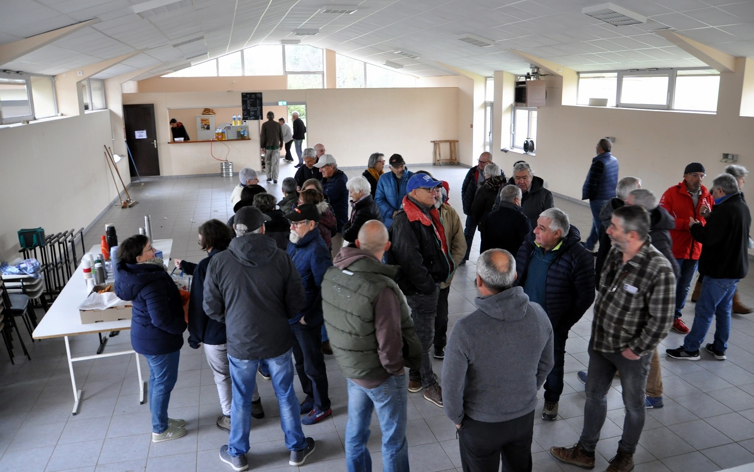 Un premier arrêt café (apporté par les membres), et viennoiseries (offertes par le club), sans oublier les cannelés de Pierre, se faisait à Sepx à la salle des fêtes. Le comité des fêtes, qui accueillait tout ce petit monde, était grandement remercié.