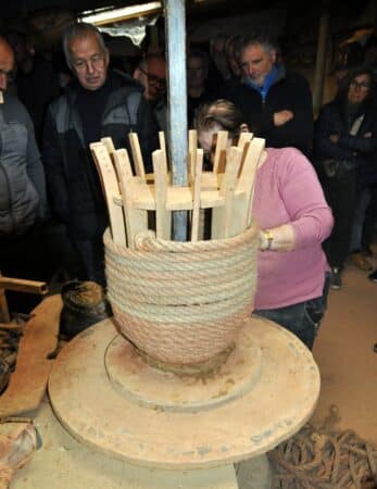 Paulette prenait du temps pour la visite des installations. Elle réalisait devant les yeux ébahis des Deuchistes, une poterie avec la technique du tournage à la corde.