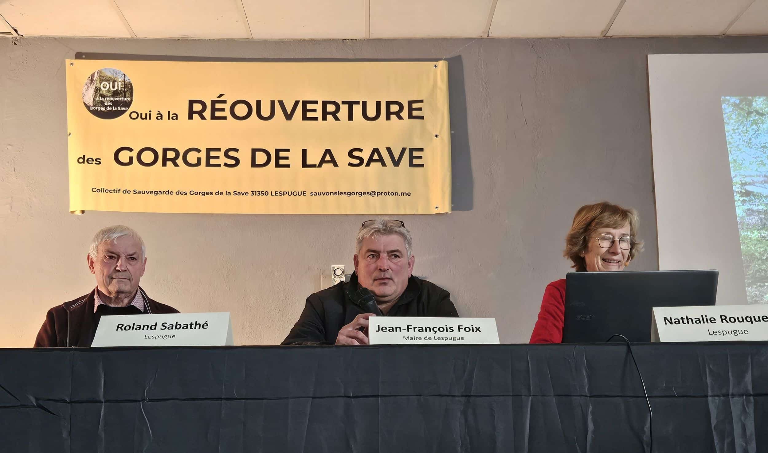 Devant une salle comble à Lespugue, le Collectif Sauvegarde des gorges de la Save, fort d’une soixantaine d’adhérents, représenté par sa présidente Nathalie Rouquerol et le trésorier Roland Sabathé, aux côtés du maire de Lespugue Jean-François Foix, a tenu son assemblée générale, samedi 6 décembre.