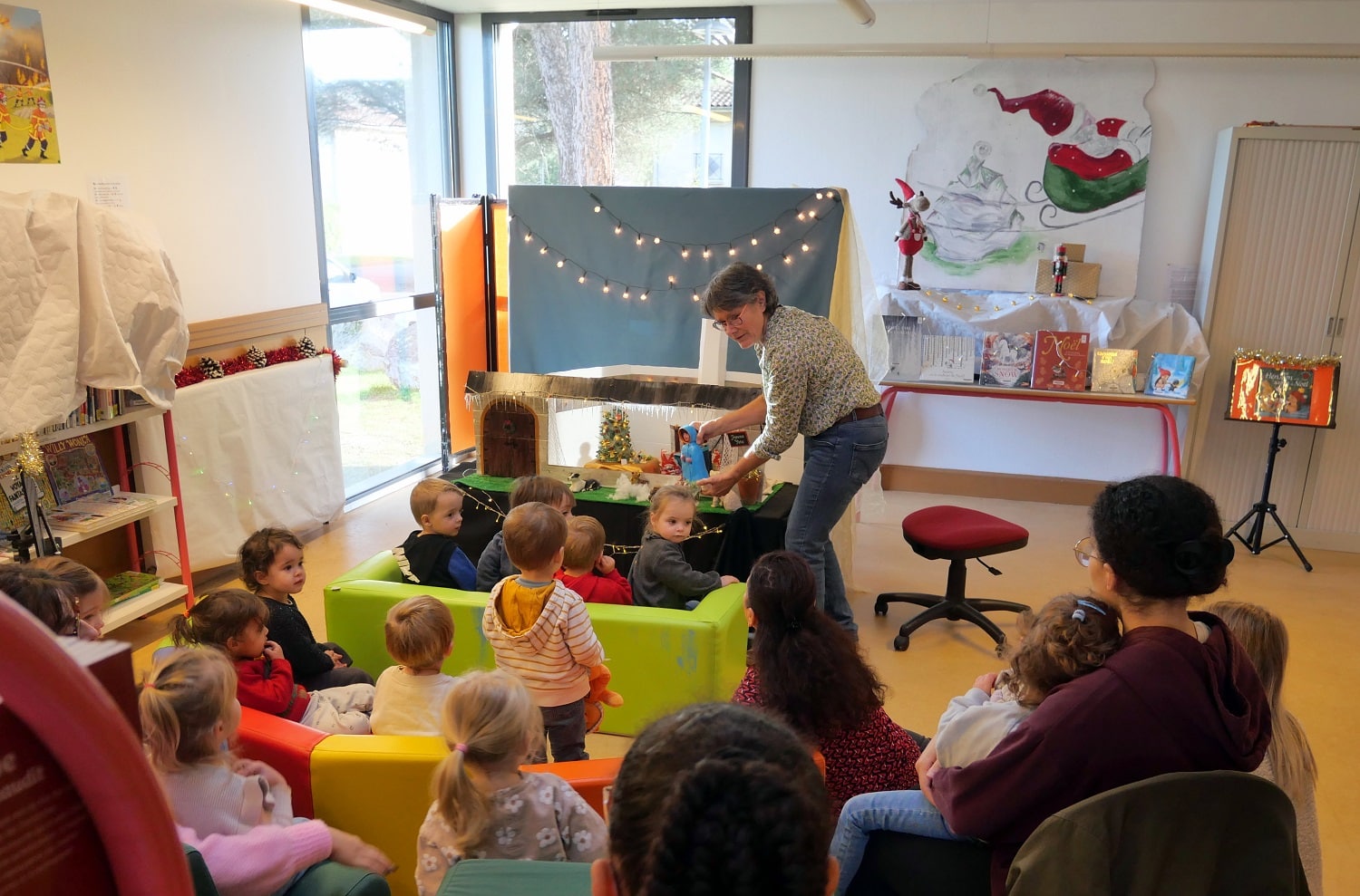 Ce mercredi 18 décembre, elle lisait un conte pour enfants aux ACM (Ateliers créatifs montréjeaulais), de Marielle Eychenne.