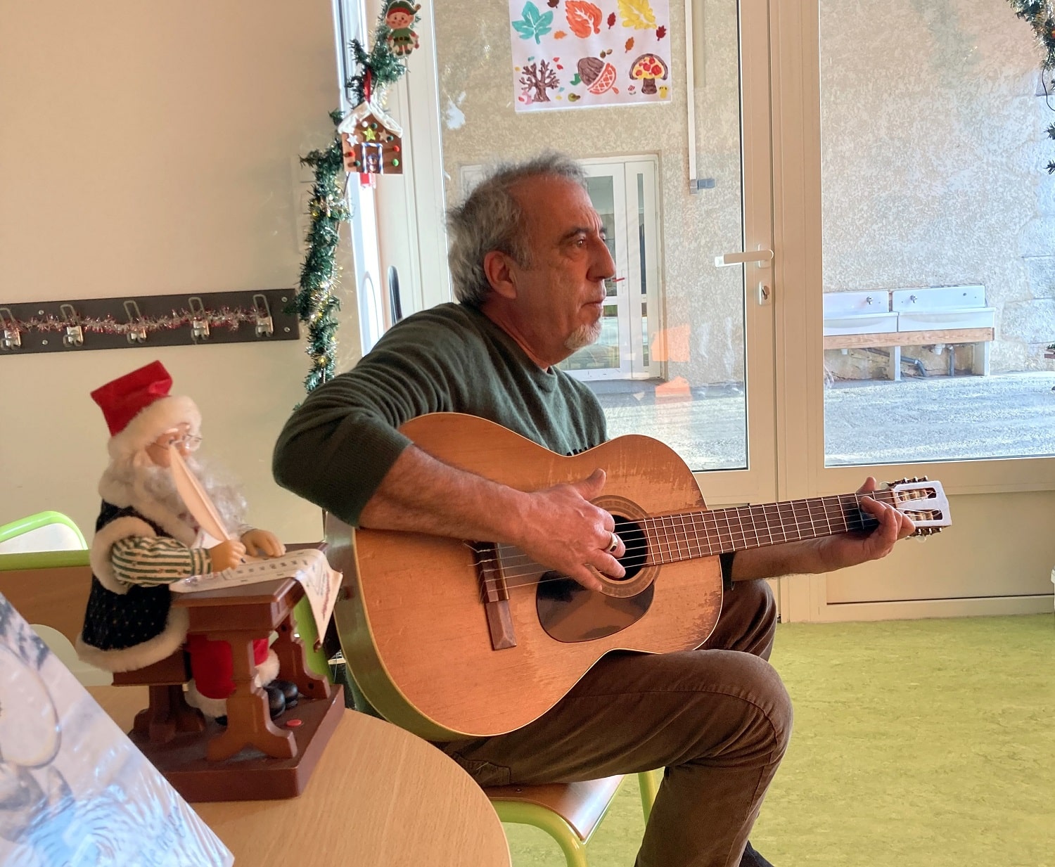 Marie était accompagnée à la guitare par Vincent, intervenant musical à l’ADAC.