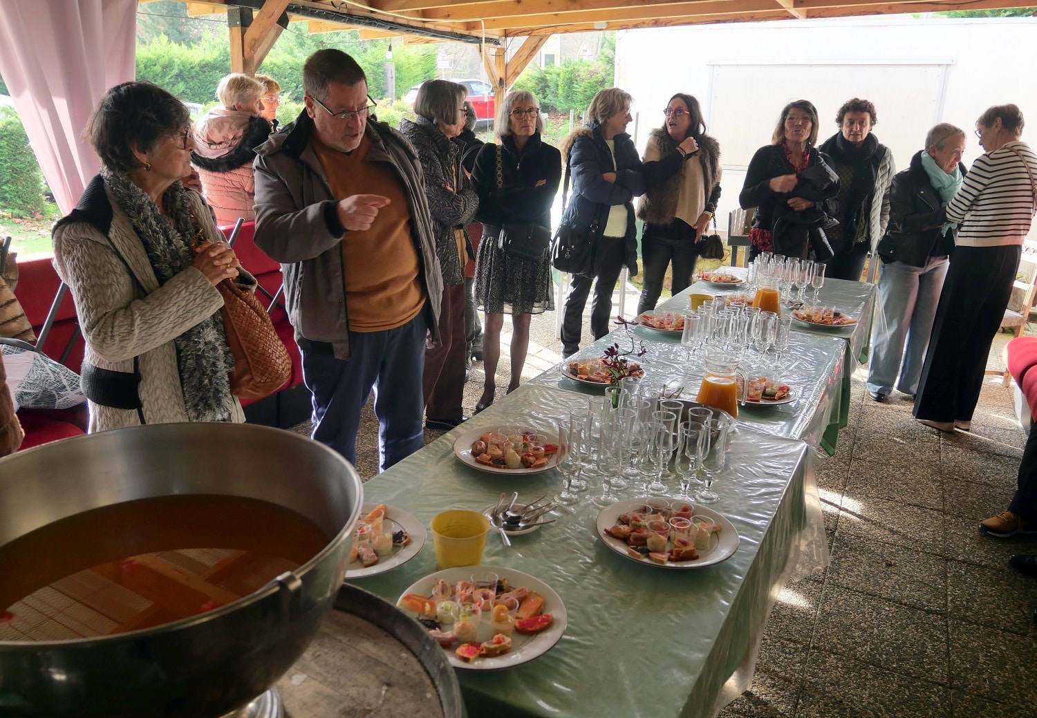 Après un délicieux punch accompagné d’une farandole de toasts pris en apéro, place à un bon repas se terminant en beauté par une omelette norvégienne, flambée par le Président et coupée par le chef.
