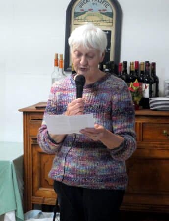 Quelques animations étaient prévues tout au long du repas, dont une prose écrite et déclamée par Marie-Claude Chambrillon, « la godasse ». Rires et applaudissements.