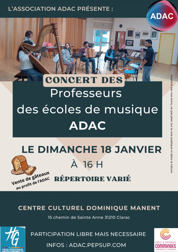 Comme chaque année, les professeurs de musique de l’ADAC (Association pour le Développement des Arts en Comminges), donneront un concert.