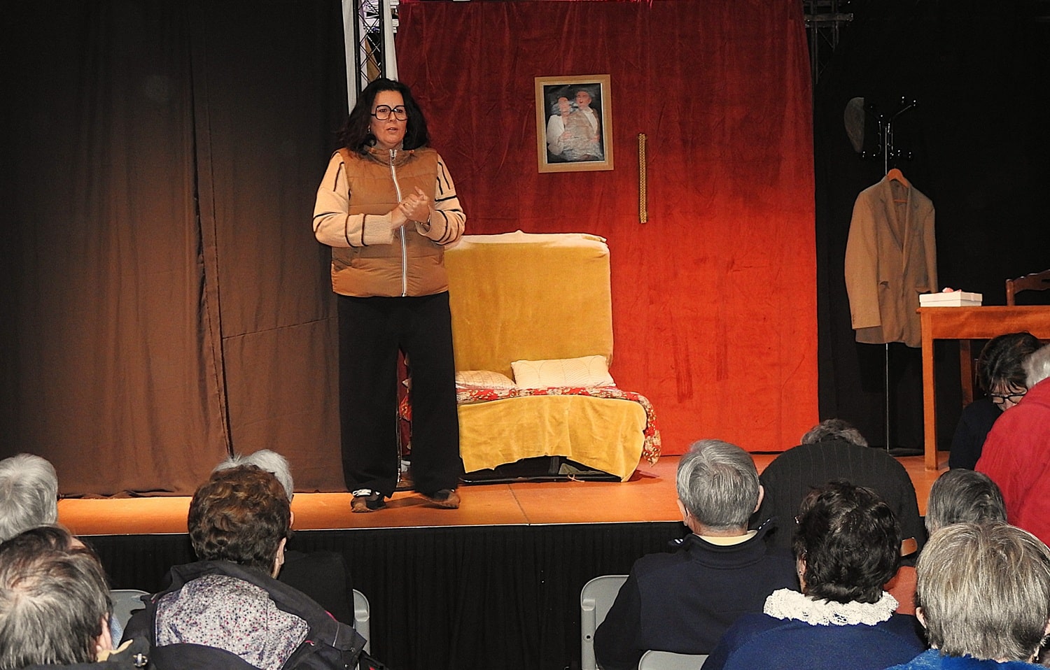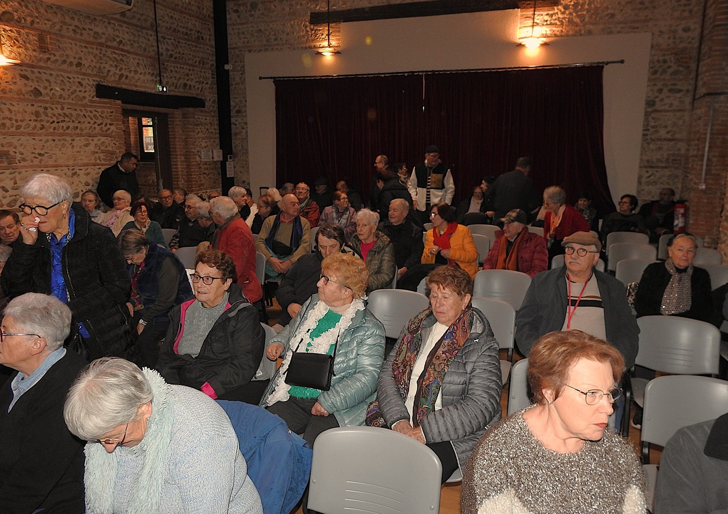 La salle était comble lorsque Mme Sabine Capoul, adjointe et membre de la commission culture de la ville, a pris la parole sur scène. Elle a présenté ses meilleurs vœux pour 2026 et a chaleureusement remercié les nombreux participants pour leur présence. L’après-midi a débuté par une représentation théâtrale de “La puce à l’oreille”, une pièce classique de Feydeau, interprétée par la talentueuse compagnie Scaramouche de Pibrac.