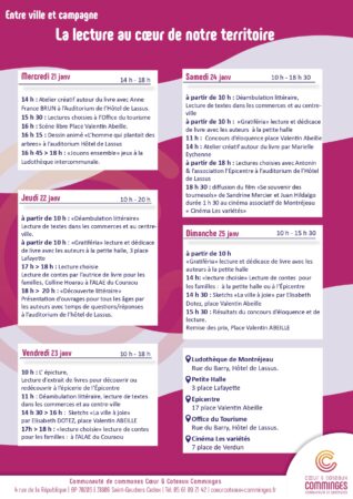 Les « Nuits de la lecture » sont un évènement national et fêtent cette année leur dixième anniversaire.  Le thème 2026 : « Les villes et les campagnes ». L’Epicentre organise à cette occasion diverses manifestations du mercredi 21 au dimanche 25 janvier.