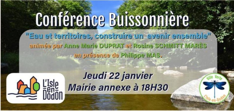 Le Groupe Ville verte de la commune de l’Isle en Dodon propose une rencontre autour du thème Eaux et territoires, contruire un avenir ensemble, dans le cadre des Conférences Buissonnières.