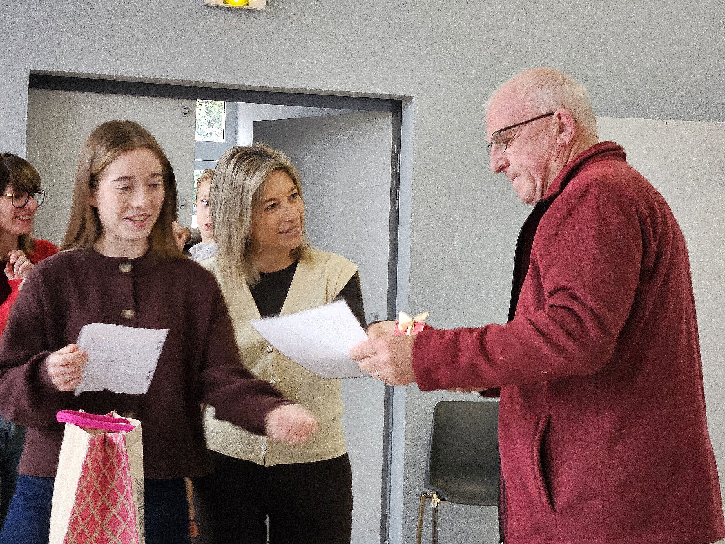 La présidente Marie-Josée Llunell n’ayant pas pu être présente pour des raisons personnelles impératives, c’est la secrétaire suppléante Leena qui a officié. Le 3ème prix a été décerné à Jean et Nadine Ferran, le 2ème prix à Josette et Gégé Dufaur, et le 1er prix à Aurélie Dupont et Alan Olivier (absents car en voyage à Paris pour présenter leur bébé à leur famille).