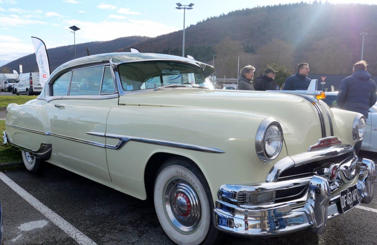 Aujourd’hui, Michel de Cierp Gaud est venu avec son épouse dans une splendide Pontiac Chieftain Catalina de 1953. Pour les chiffres, Huit cylindres en ligne, 4 078 cm3 de cylindrée, 5,47m de longueur, 1,947m de largeur, 1,611m de hauteur pour un poids de 1 690kg ! Une vitesse maxi de 140 km/h. On ne parlera pas de sa consommation de super, car quand on aime, on ne compte pas.