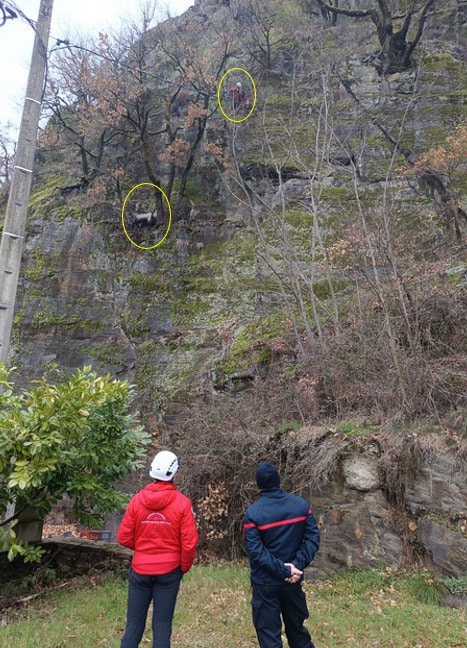 Afin de secourir l’animal, 11 personnels de deux équipes spécialisées, l’unité SMPM (Secours en Milieu Périlleux et Montagne) et l’unité RAN (Risque Animalier) ainsi qu’un vétérinaire de sapeur-pompier ont été engagés afin de travailler conjointement à la mise en œuvre du dispositif de sauvetage sur corde. Au total, 15 sapeurs-pompiers se trouvaient sur les lieux.