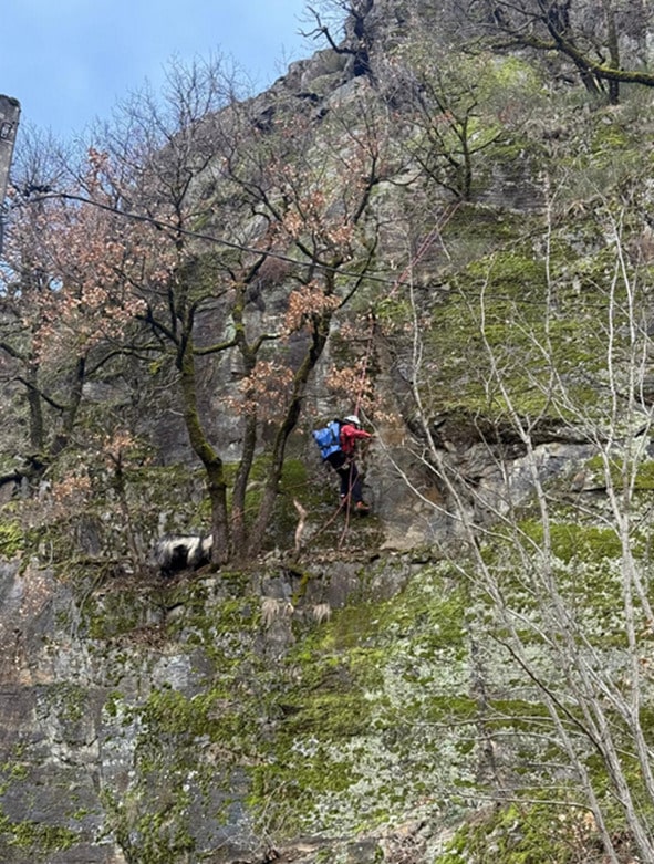 Les sapeurs-pompiers de Haute-Garonne ont été engagés ce 1er février 2026 à 10h22 sur la commune de MELLES afin de secourir un bouc pris au piège à environ 15m de hauteur sur une paroi rocheuse depuis plusieurs jours.