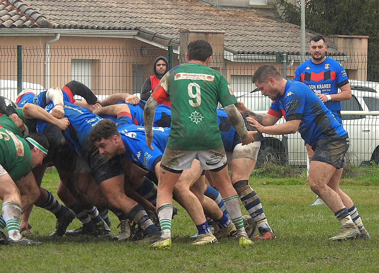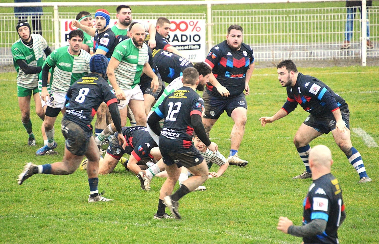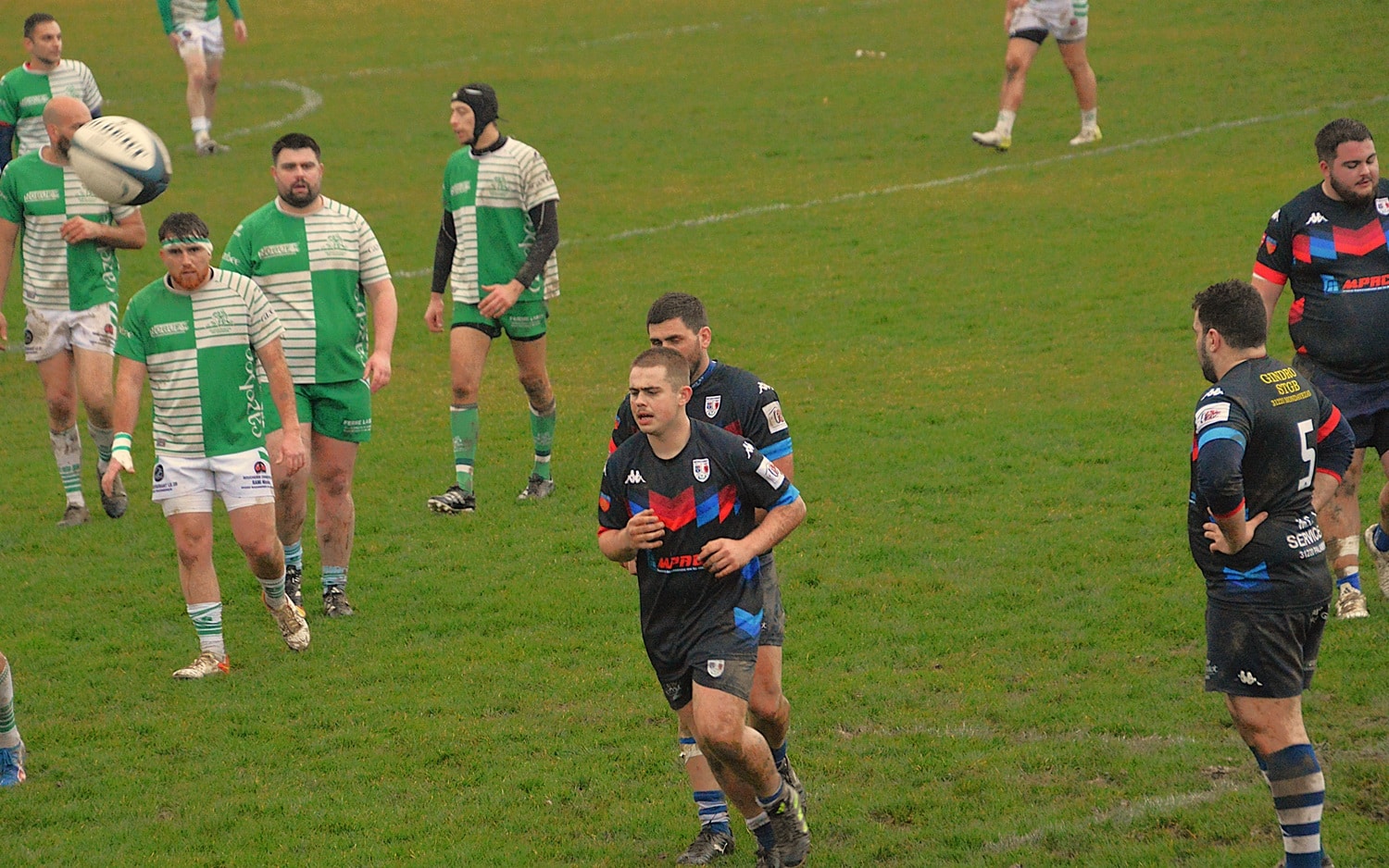 Malgré un terrain rendu glissant par une pluie persistante, les deux équipes ont montré une belle volonté d’animer le jeu. Les visiteurs, rapidement en jambes, ont ouvert le score avec deux essais. Toutefois, piqués au vif, les locaux ont réagi et sont revenus au score grâce à deux pénalités de Maxime Souquet, après la sortie sur blessure de Thomas Felborg, remplacé par Pablo Lazaro.