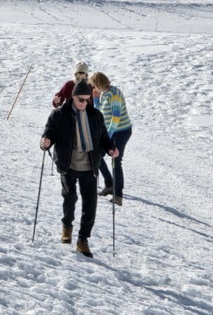 Pendant près d’une heure, chacun savoure ce moment privilégié : le crissement de la neige sous les pas, la beauté des montagnes enneigées, et surtout le plaisir simple d’être ensemble à l’extérieur.