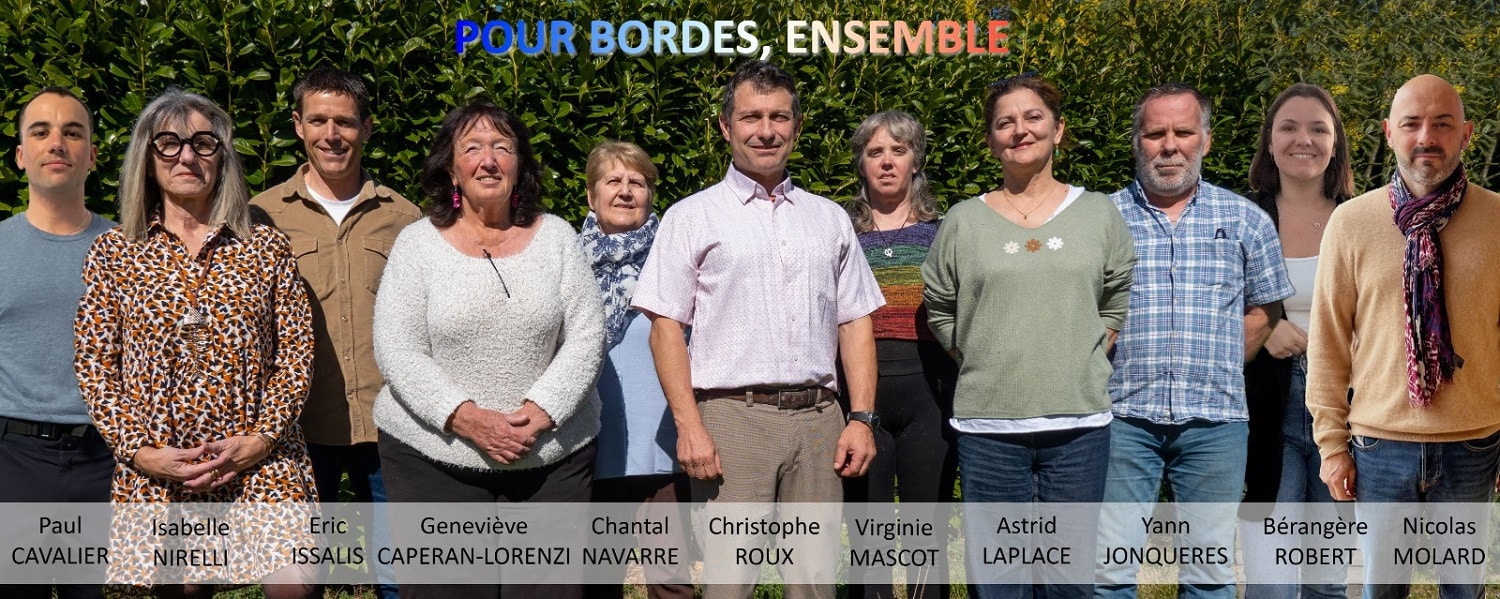 Nous voulons inscrire notre mandat dans la durée, en consolidant ce qui fonctionne et en innovant là où c’est nécessaire. Notre équipe, pleine de volonté et d’ambition, est prête à relever les défis de demain : transition écologique, attractivité économique en favorisant la venue de nouveaux foyers de vie, renforcer nos liens de proximité, et qualité des services publics. Nous nous engageons à ce que chaque Bordiennes et Bordiens soient acteurs du développement de notre commune.