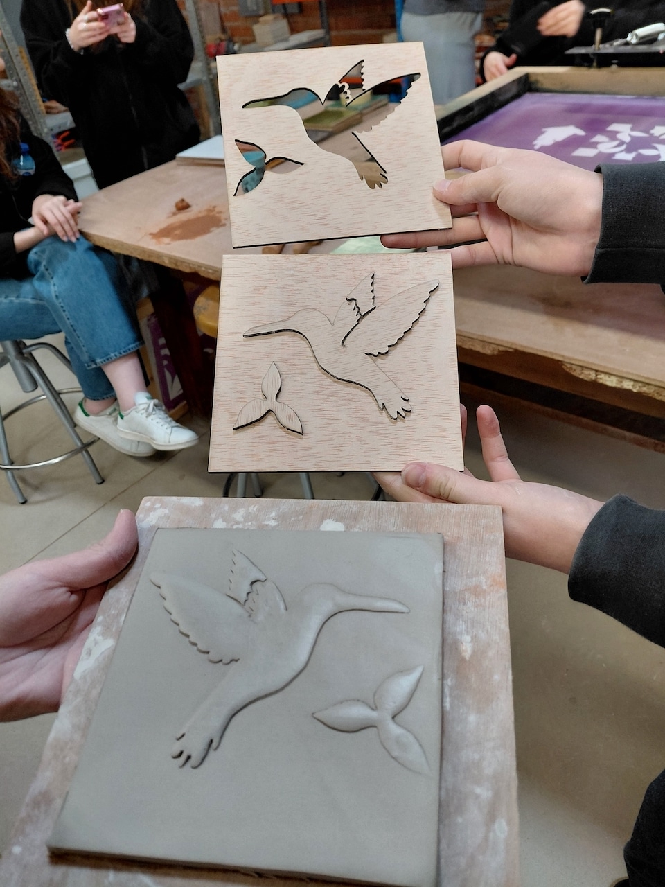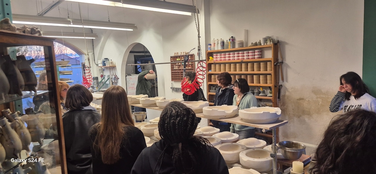 Tout au long de la semaine, les élèves ont pu approfondir leurs connaissances de la céramique à travers de nombreux ateliers et visites. La découverte de l’usine d’extraction d’argile leur a permis de mieux comprendre l’origine et la transformation de la matière première, étape essentielle dans le travail du céramiste. En atelier, ils ont expérimenté différentes techniques : émaillage de pièces en vue d’une cuisson raku, sérigraphie sur céramique, modélisation 3D et découpe laser pour la création de carreaux décoratifs. Ces activités ont permis de relier savoir-faire traditionnel et outils numériques, tout en partageant méthodes et pratiques avec leurs correspondants espagnols.