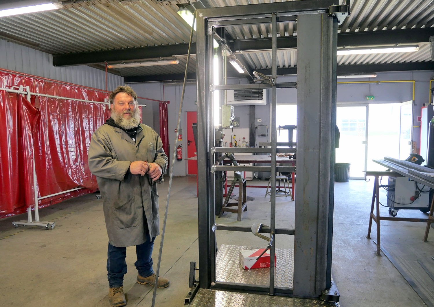 A l’atelier métallerie, on s’active avec le professeur dédié Nicolas Giroud, à la fabrication d’une porte d’effraction.